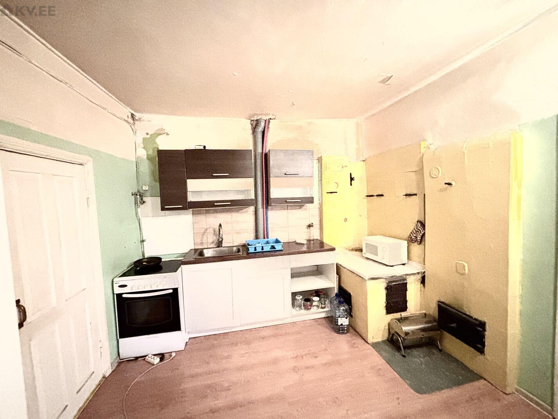 Köögi (pindala ca 13m2) seinad ja lagi vajavad krohviparandusi (lubikrohv) ja värvimist. Palkmaja, seintel lubikrohv, esineb ka erinevatel aegadel tehtud parandusi ja värvikihte (sh emailvärv, mitte-lubikrohviga ja pahtliga tehtud parandused). Lagi ja seina ülemine osa ca praeguse kõrguseni värvida valgeks, seinad pisut tumedat tooni (täpsustame koos). Kapid tööde ajaks seintelt eemale tõsta ja pärast tagasi panna. Põrand, ahi/soemüür, küttetorud, uksed, radika jms kinni katta tööde ajaks.