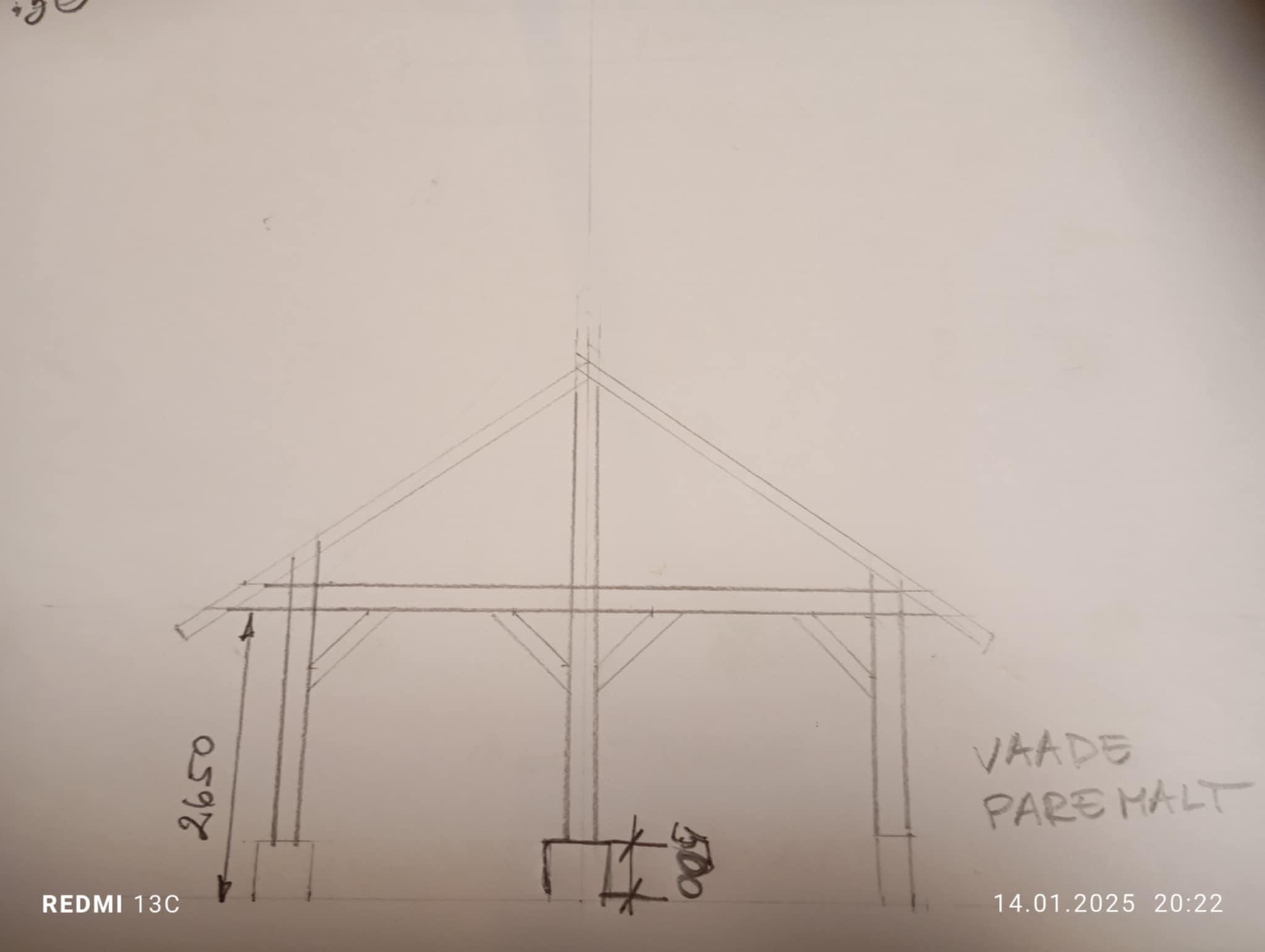 Hind sisaldab ümarpalgist suveköögi karkassi vstavalt joonisele. Paigaldus hinna sees ja maksab 800 .- Valmistan ette ka sarikatapid et oleks pärast lihtsam neid paigaldada. Hinnale lisandub Hange.ee teenustasu võidu korral . Suveköögi paigaldus võimalik JUUNI KESKPAIGAKS.