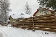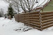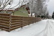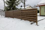 Metallpostidel vertikaalne puitlippaed, vastavalt hanke kirjeldusele. Aialipid ja horisontaalid on krunditud + 2x värvitud. Tsingitud ja pulbervärvitud postid on betoneeritud pinnasesse. Omame piirdeaedade ja väravate paigaldamisel igapäevaseid kogemusi üle 16a. Garantii vastavalt seadusele. Lisasoodustuse võimalus peale objektiga tutvumist. |