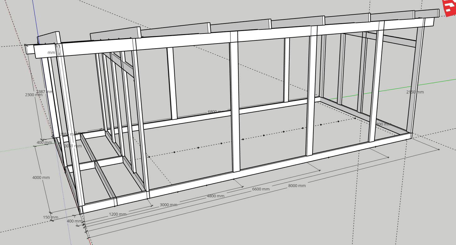 Otsin olemasoleva abihoone/tööriistakuuri seadustamiseks ehitusprojekti (eelprojekti) tegijat. Abihoone suurus on 4x8m (32m2), max kõrgus 3.2m, sees on 2 ruumi, mõlemal eraldi välised uksed. Hoone on soojustamata, puitkarkass, postvundament. Reaalsuses on abihoone valmis, lisan pildid ja pildi SketchUp-ist konstruktsioonide kohta. Objekt asub Lääne-Harju vallas, Harjumaal (ca 35km Tallinna piirist).