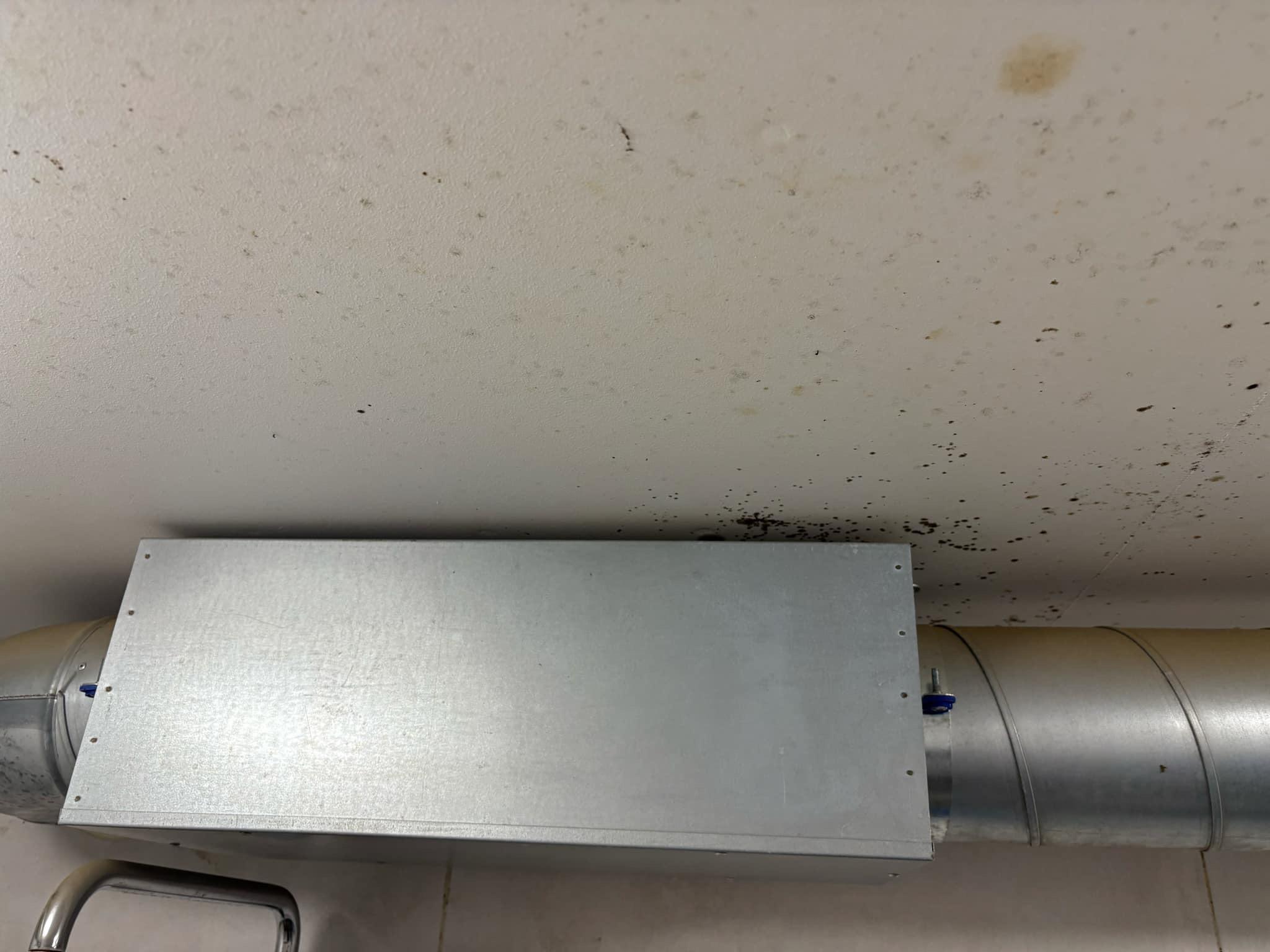 Tegemist on töökoja vannitoaga mille lagi on läinud hallitama kuna vendiseade oli kahjustada saanud.