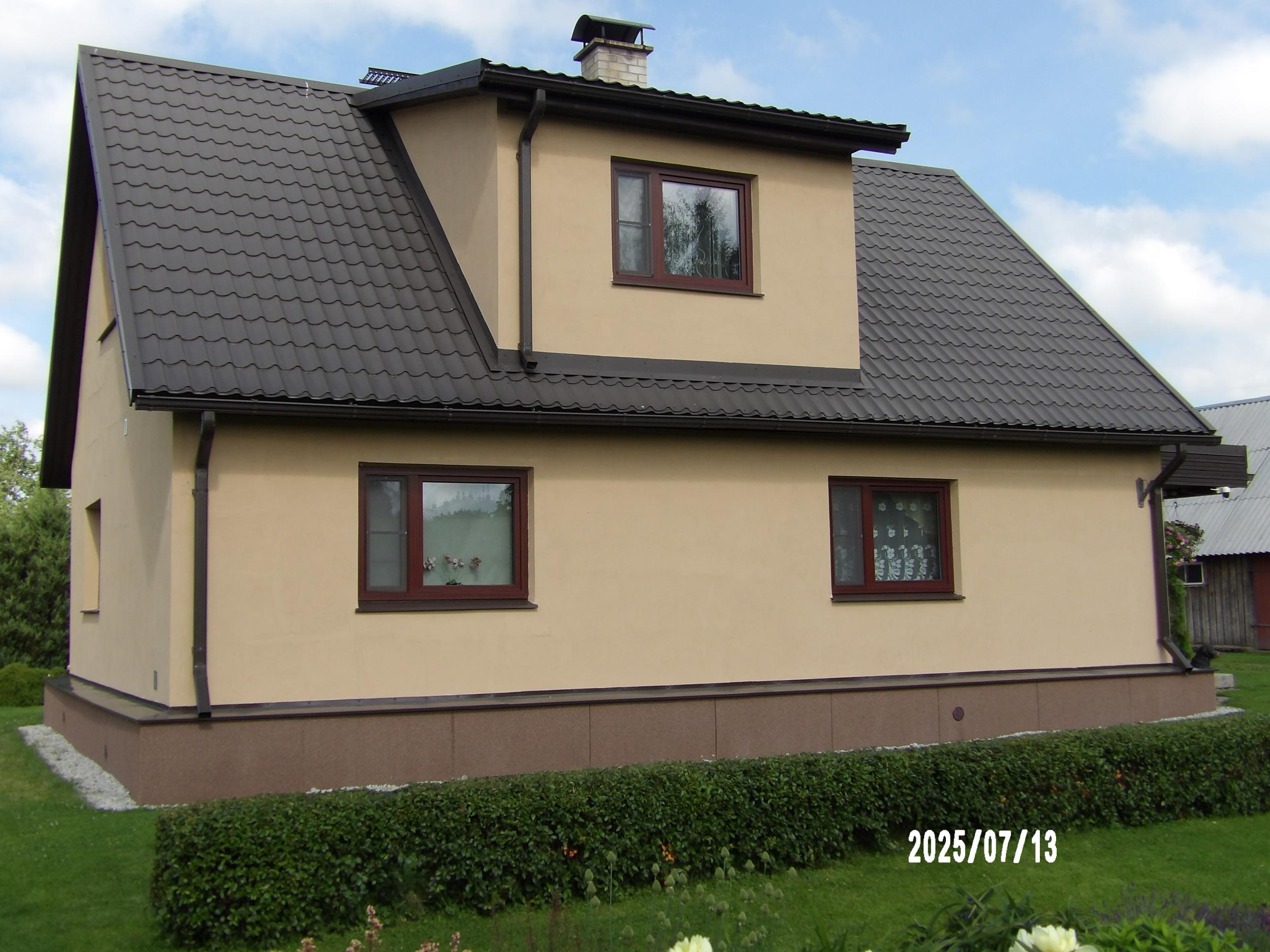 Krohvi pragude täitmine, töötlemine hallituse ja sambla eemaldamise vahendiga, värvimine heledas toonis välisfassaadi värviga, tuulekasti laudise värvimine.