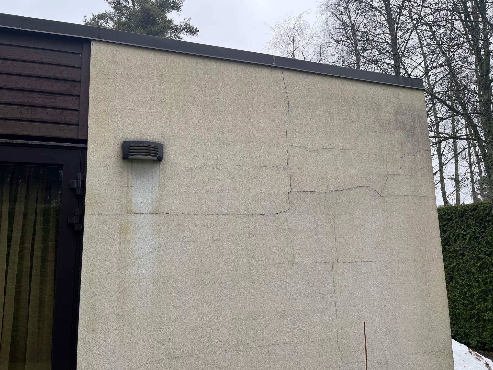 Eramu välisfassaad vajab kevadel uut krohvi (ca 110 rm). Sein on Aeroc plokist. Lisaks vaja: remontida/vahetada vihmaveetorud ja katuserenn, vaadata üle lamekatuse võimalikud remondivajadused, vahetada varjualuse tugipost ja muud väiksemad asjad seoses fassaadi-katuse-vihmaveega. Katuse asju saaks teha varem ja soojaga maikuus krohvida.
