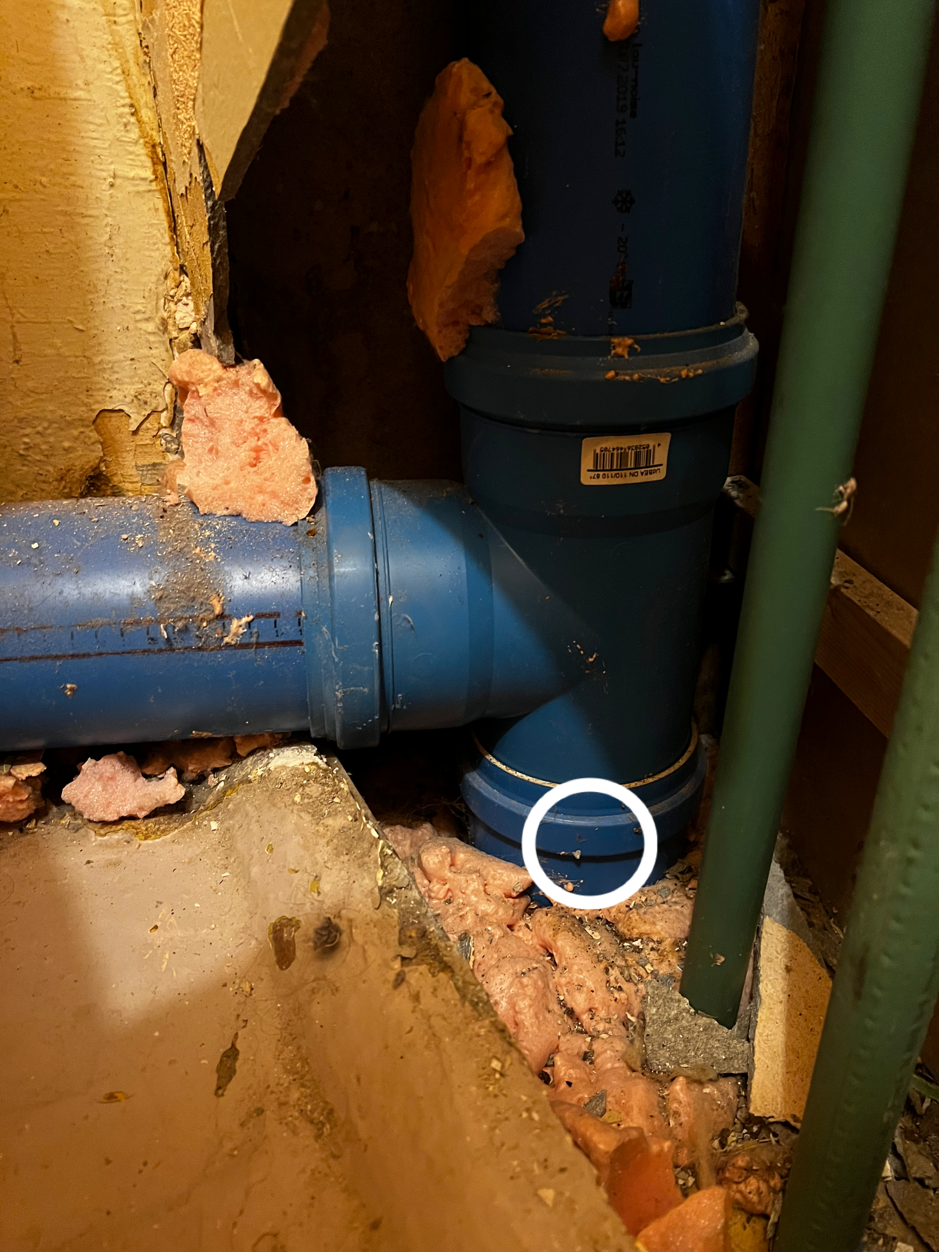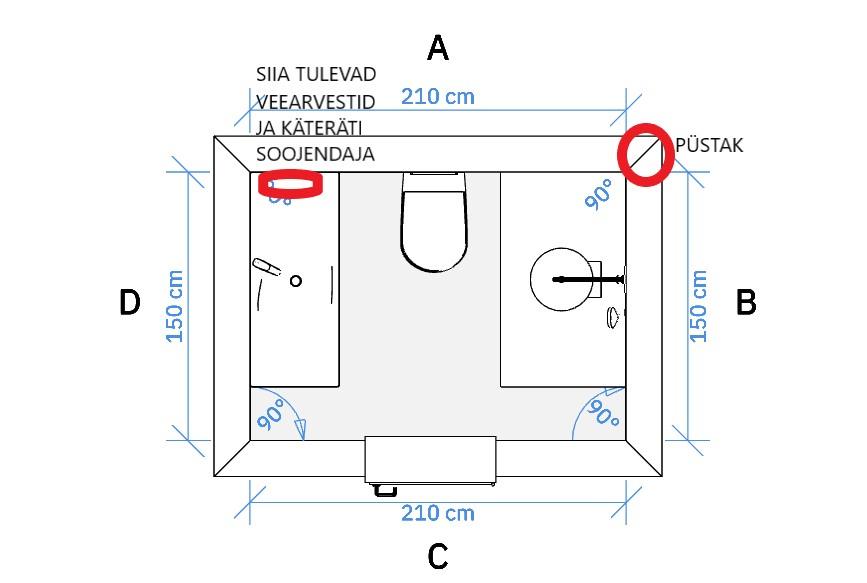 1. Duši äravoolu jaoks on vaja püstak lahti võtta ja lisada kolmik madalamale kui hetkel see on. Pildil on valge ringiga tähistatud koht kuhu peaks uus kolmik tulema.