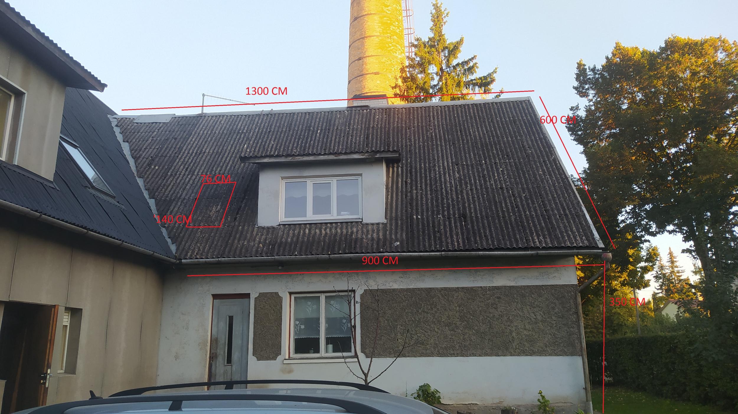 Eemaldada eterniit, ruberoid ja täislaudis. Paigaldada sarikatele hingav aluskate, distantsliist 25x50, roovitus 32x100, katuseplekk trapets, pofiil T20. Soojustada vintskappide pealsed, kuna peale katuse tegemist ei pääse sinna ligi. Vintskappide tuulekastide tegemine. Katuseakna paigaldus. Harja, neelu, otsa liiteplekkide paigaldus. Kuna hankes on ainult see katus, siis neelu tegemisel tuleb arvestada, et hetkel alles jäävat katust oleks võimalik renoveerida ilma hankes olevat puutumata. Midagi utiliseerida ei ole vaja.