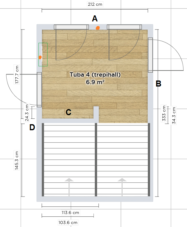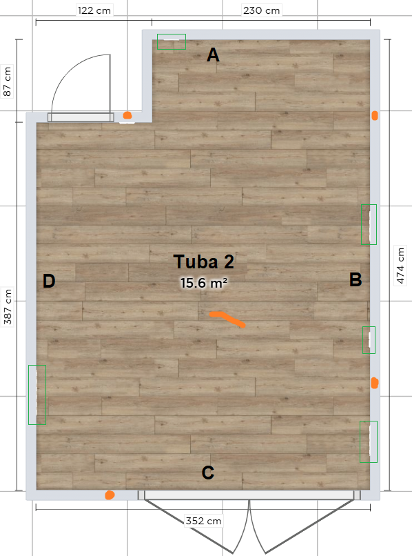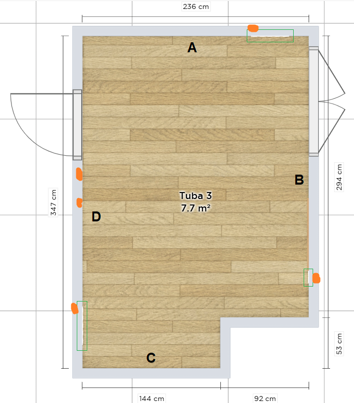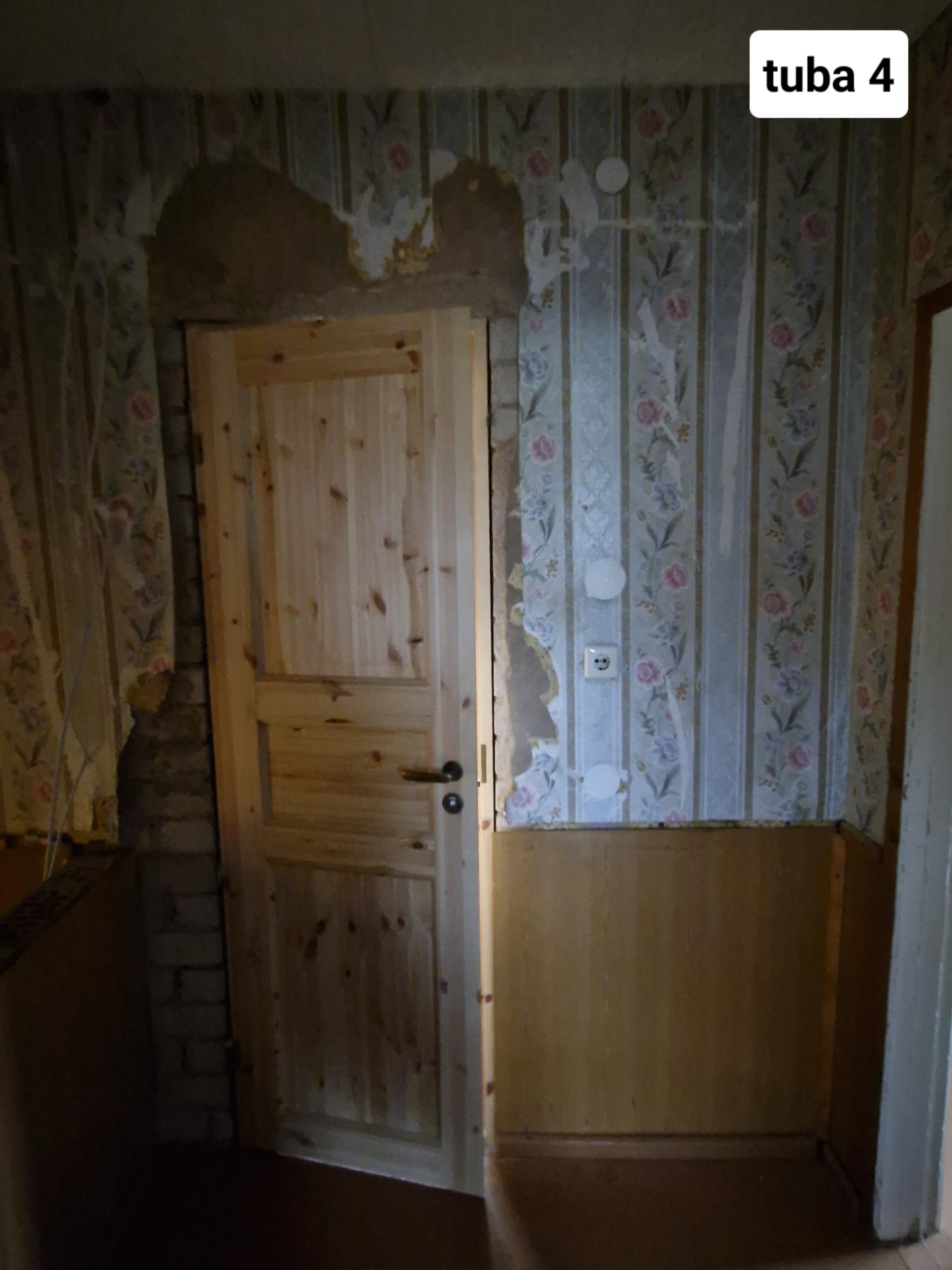 Otsime ettevõtet, kes viimistleks uueks meie 80ndatest pärit Tartu linna eramu kolm magamistuba ja nendevahelise koridori. Kuulutusele on lisatud 1) pildid igast toast, 2) tabelite kujul tööde nimekirjad iga toa kohta eraldi, mis sisaldavad ka infot materjalide kohta, mis on hetkel seinas, laes ja põrandal, ning 3) tubade mõõtmetega plaanid, kus on vana elektri asukohad märgitud oranžiga ning uute, soovitud elektrijuhtmete asukohad märgitud roheliste kastide abil.