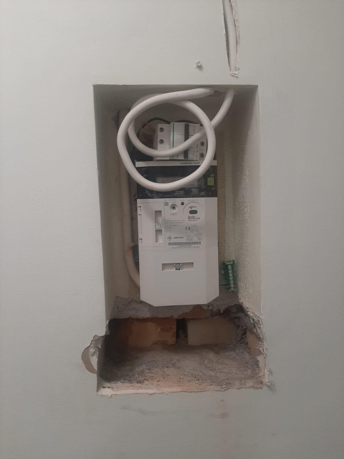 Kolmefaasiline juhe juba jookseb korterisse, aga pole ühendatud. Lisaks vaja arvesti alus ettvalmistada. Tööga on kiire