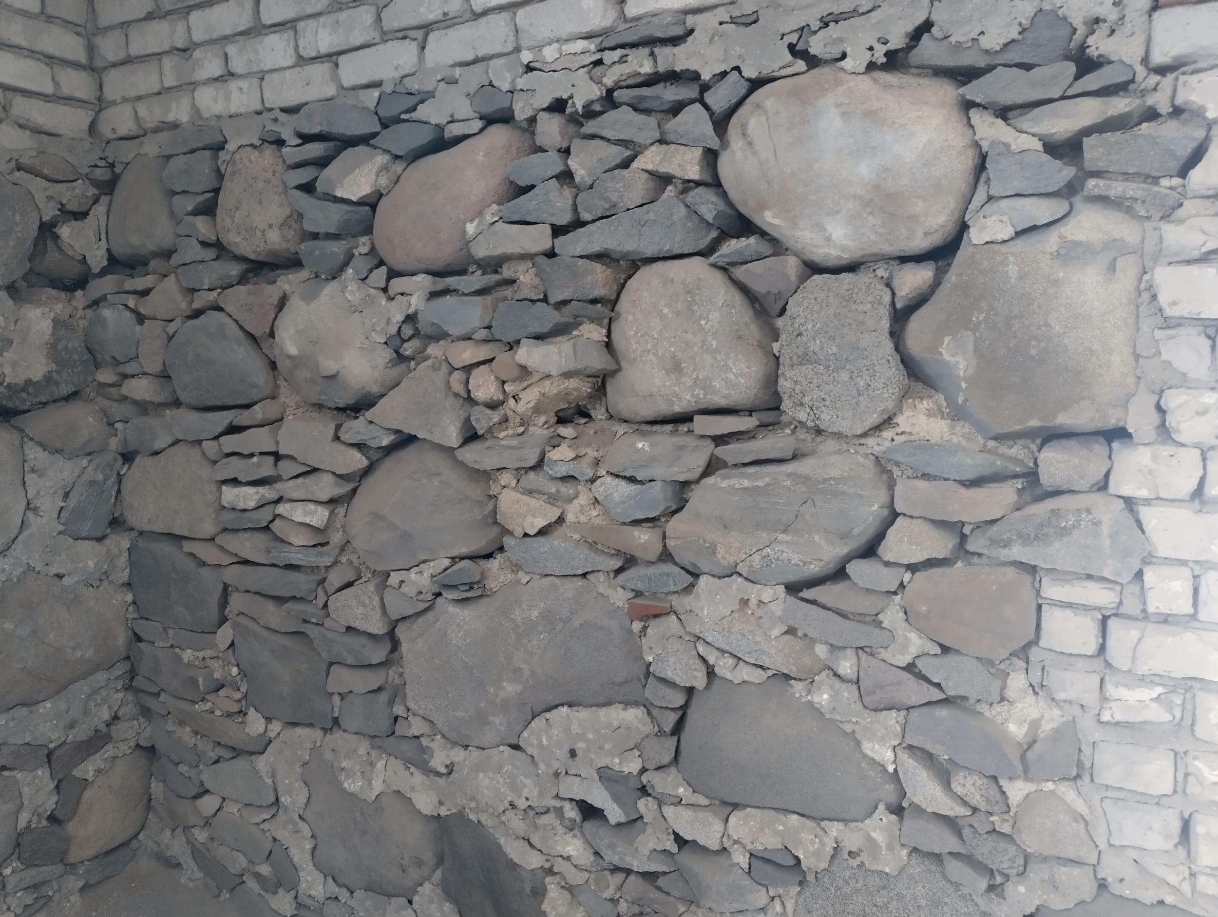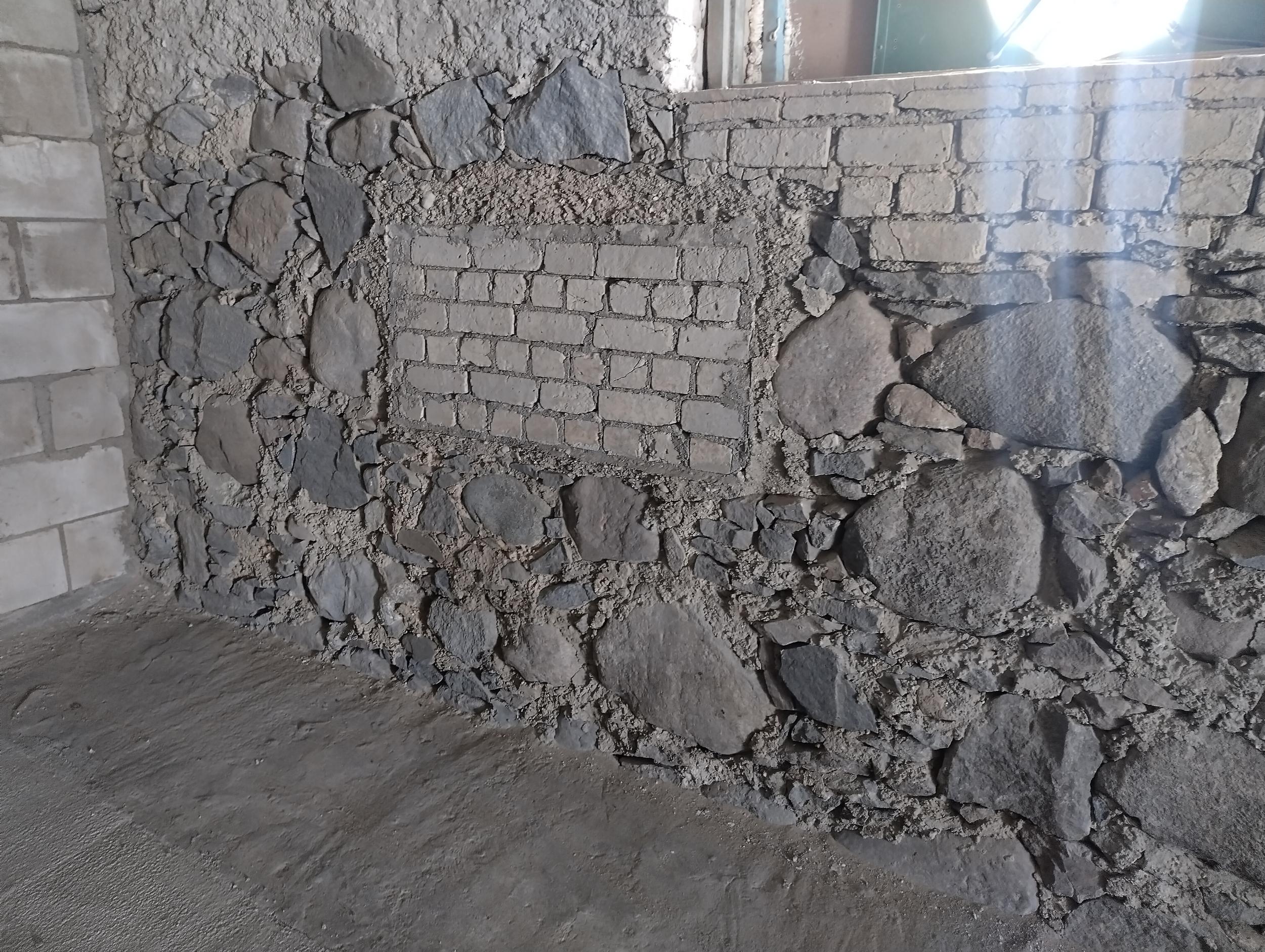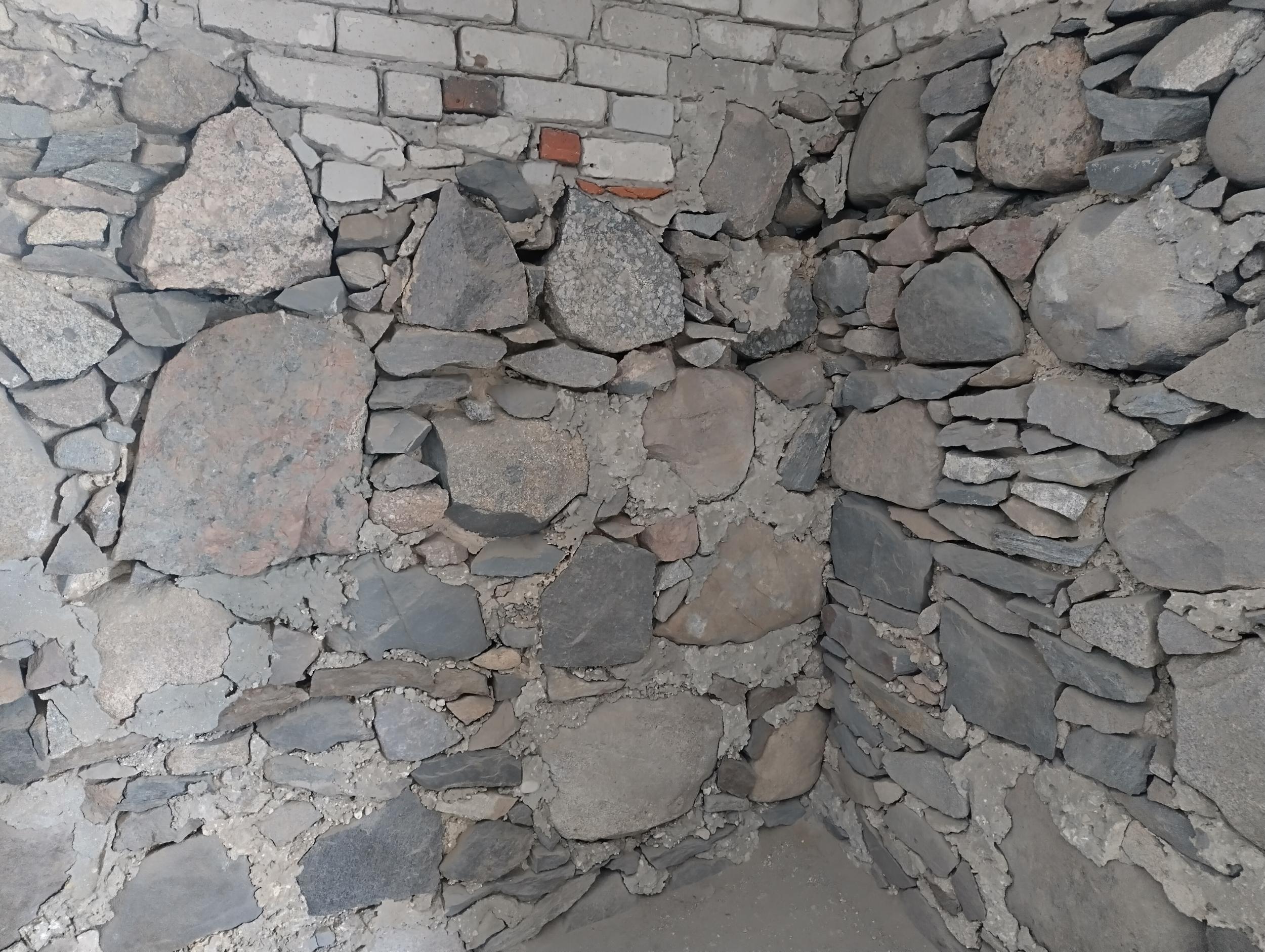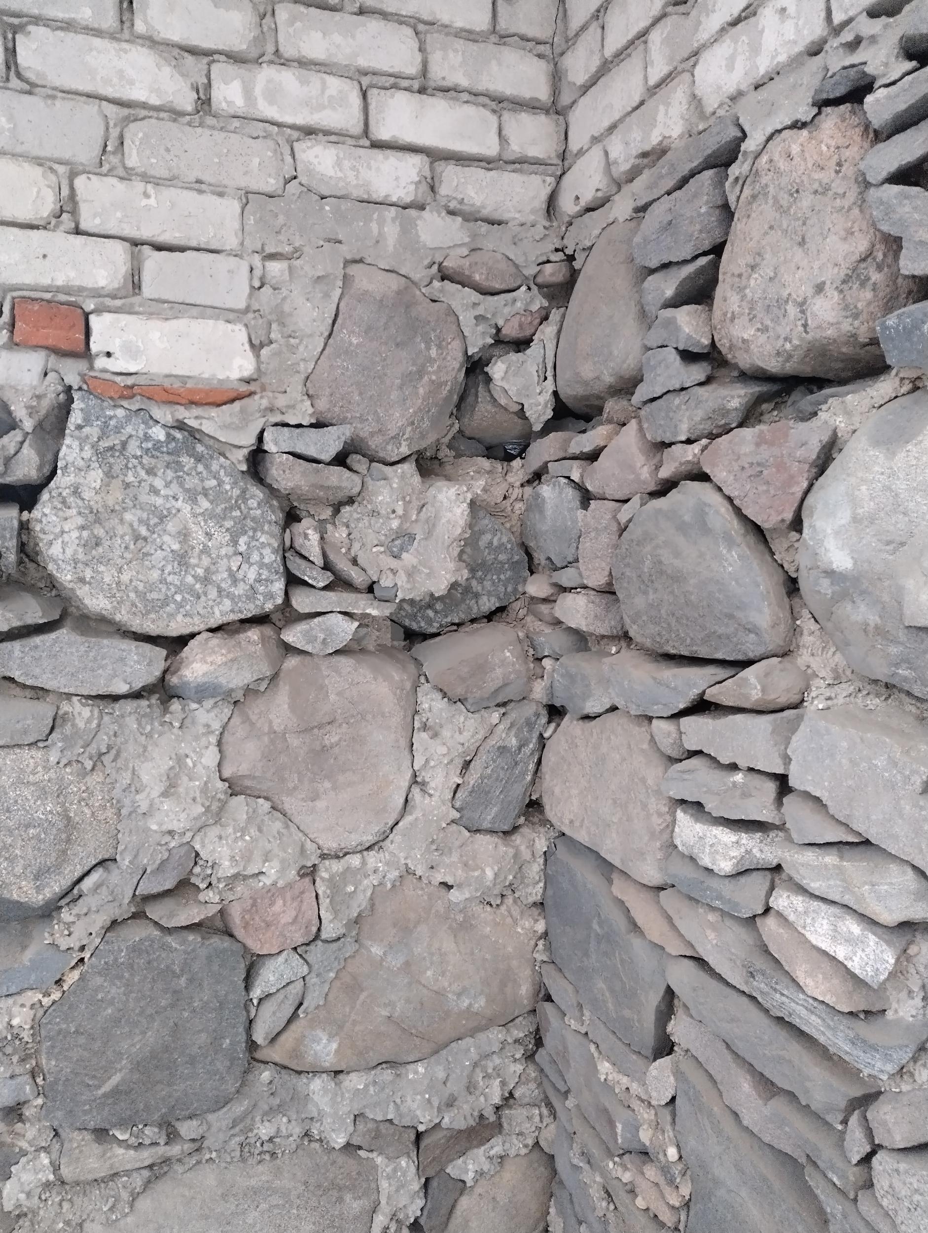 Vaja täita maakivide vuugid. Osad vuugikohad sügavalt tühjad, kohati vaja lisaks segule ka väiksemaid kive laduda vahele, eriti nurgas. Kive leidub kohapeal.