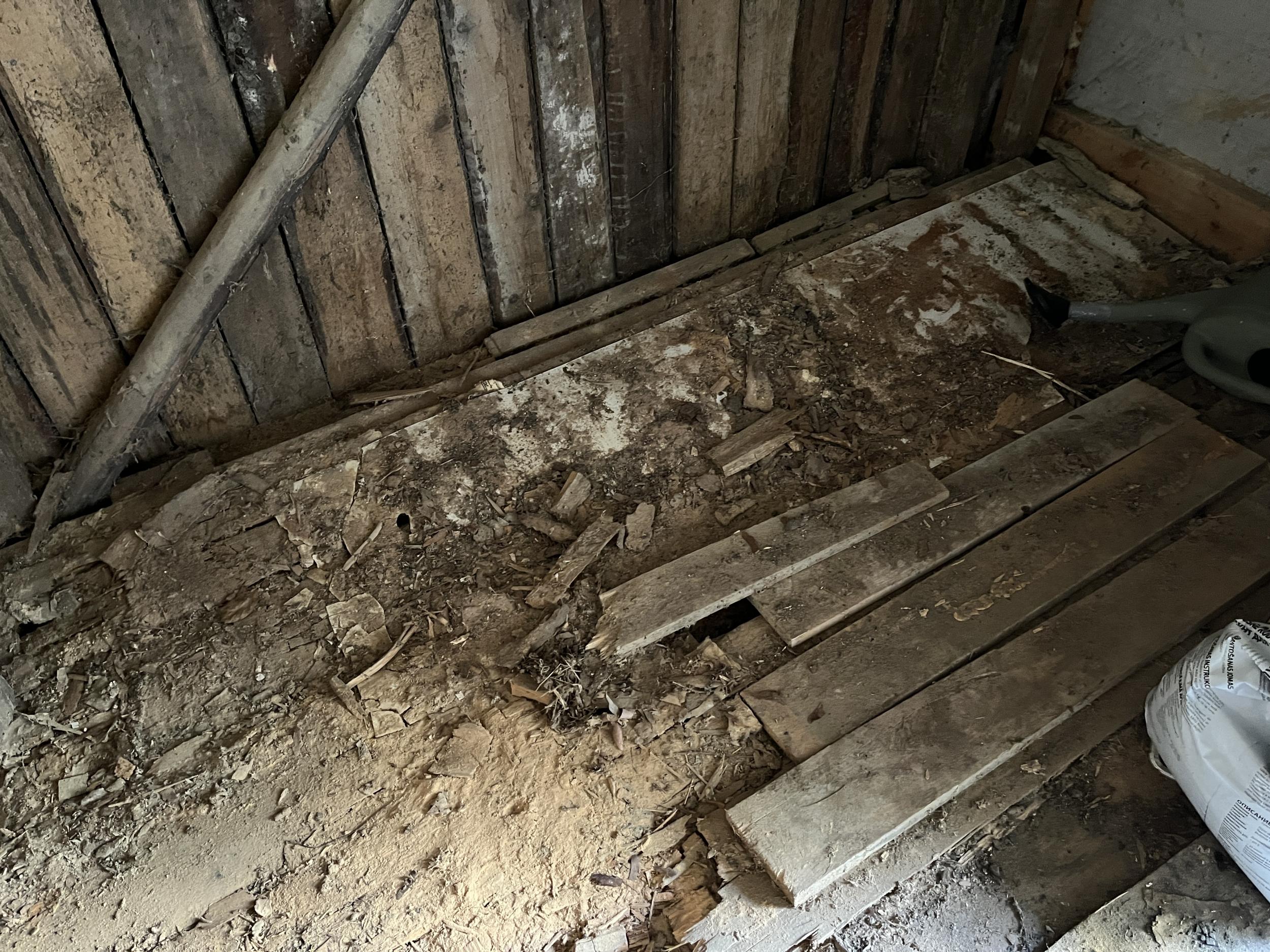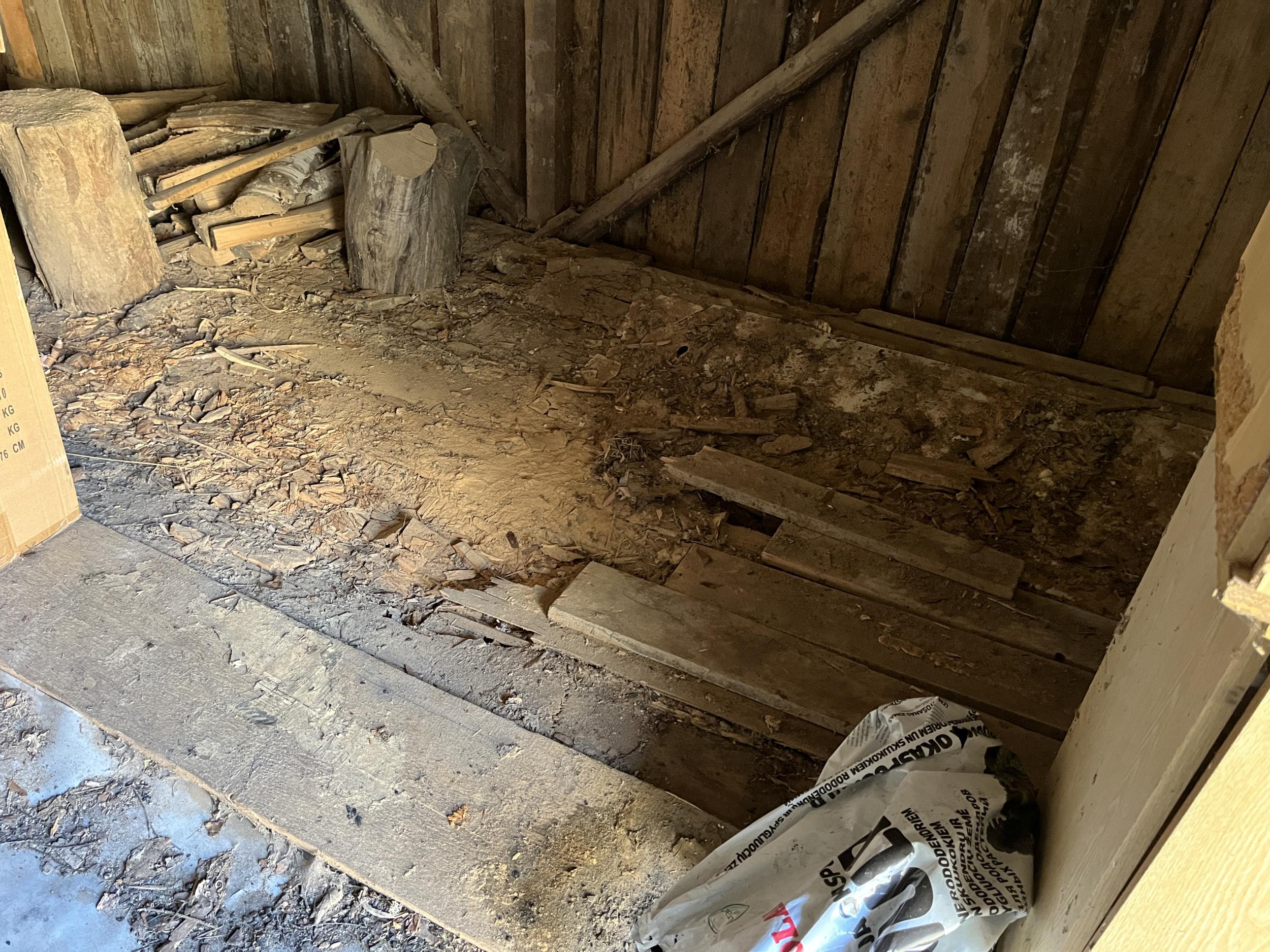 Kuuri põranda ehitus kanduritele, et jätta õhuvahe maapinnaga. Põrand puidust (terrassilaud). Vajalik eelnevalt eemaldada ja utiliseerida vana põranda jäätmed ja osa pinnasest, et saada sama tase kuuri ees oleva kõnniteega.