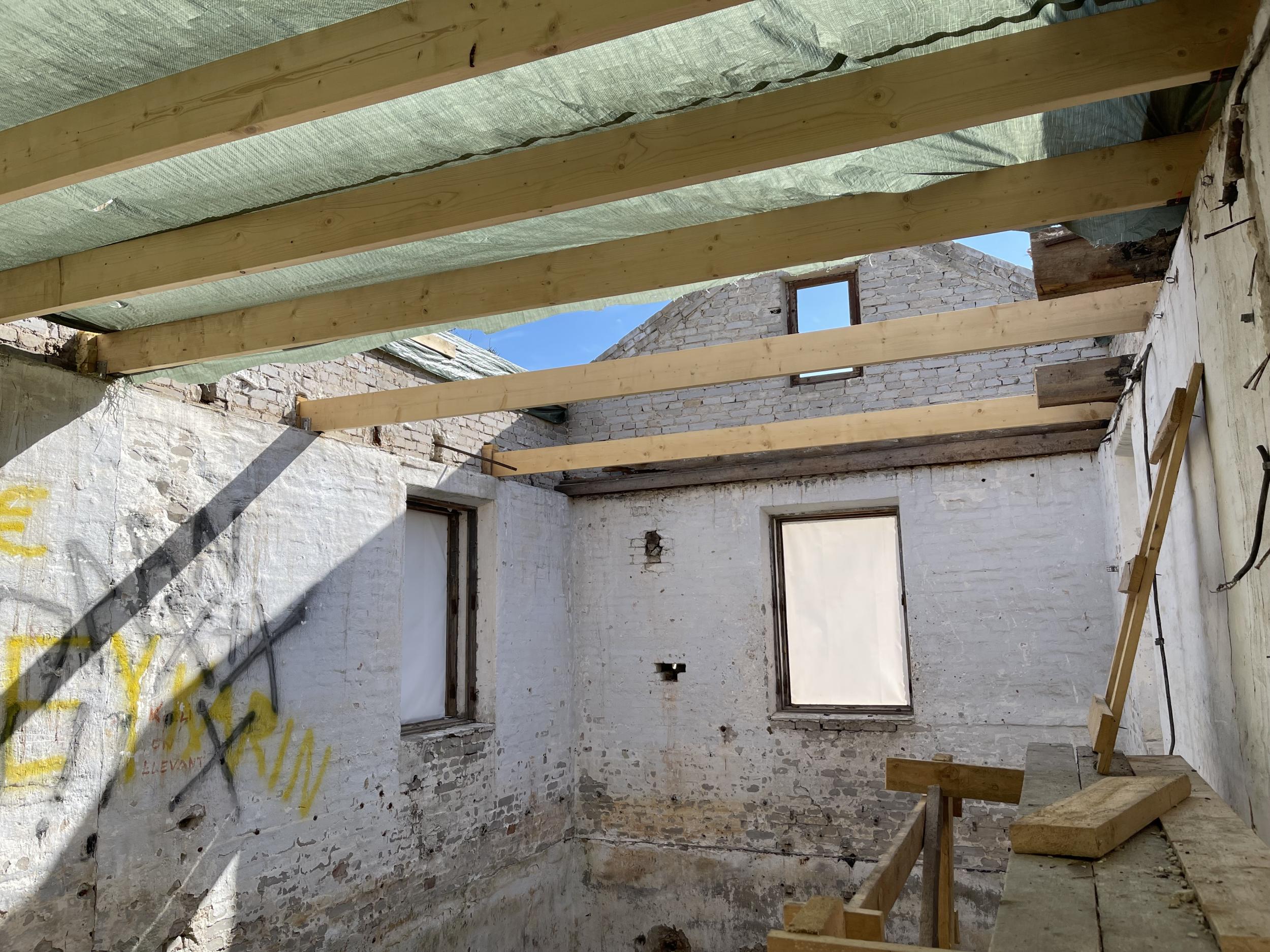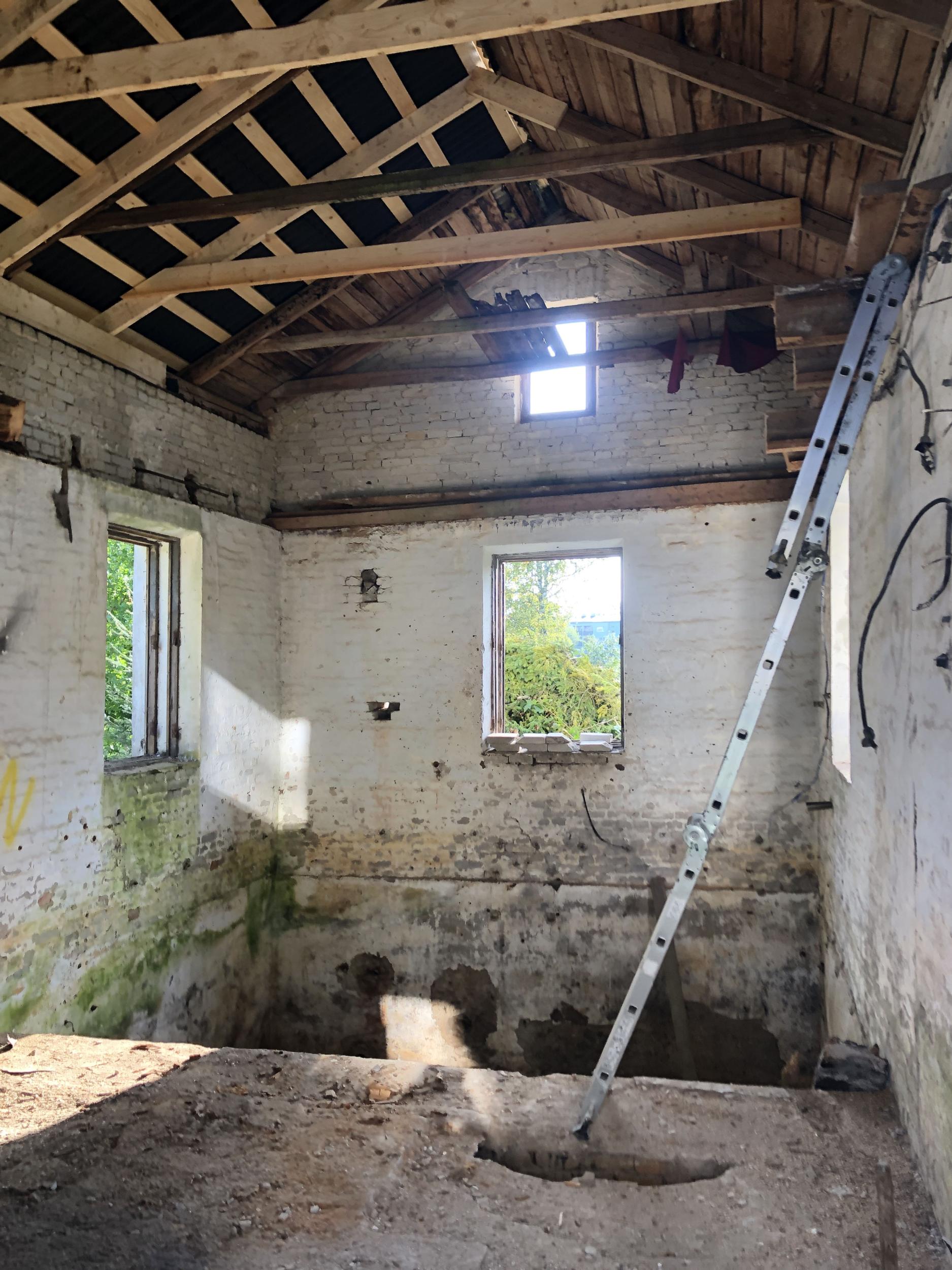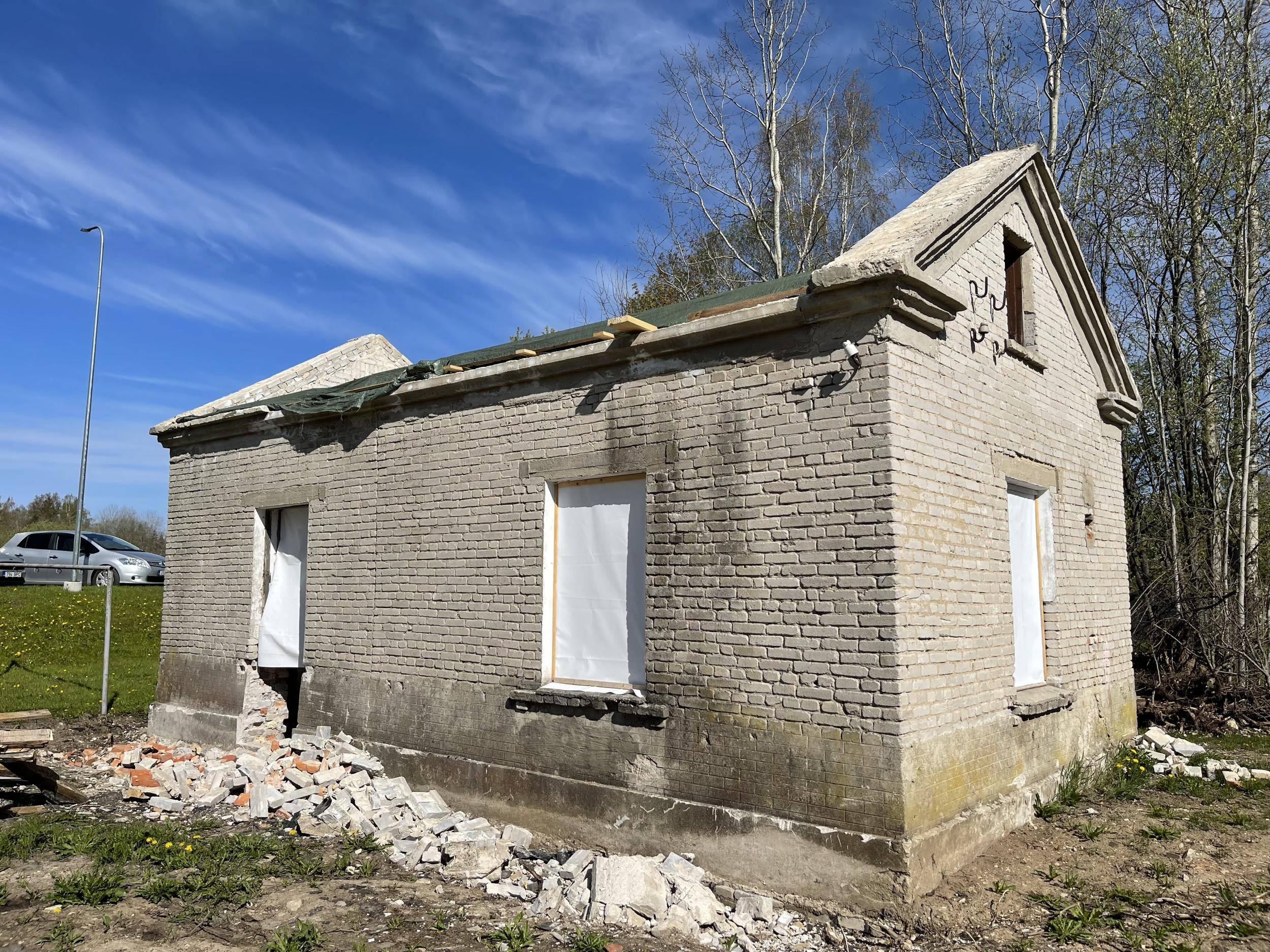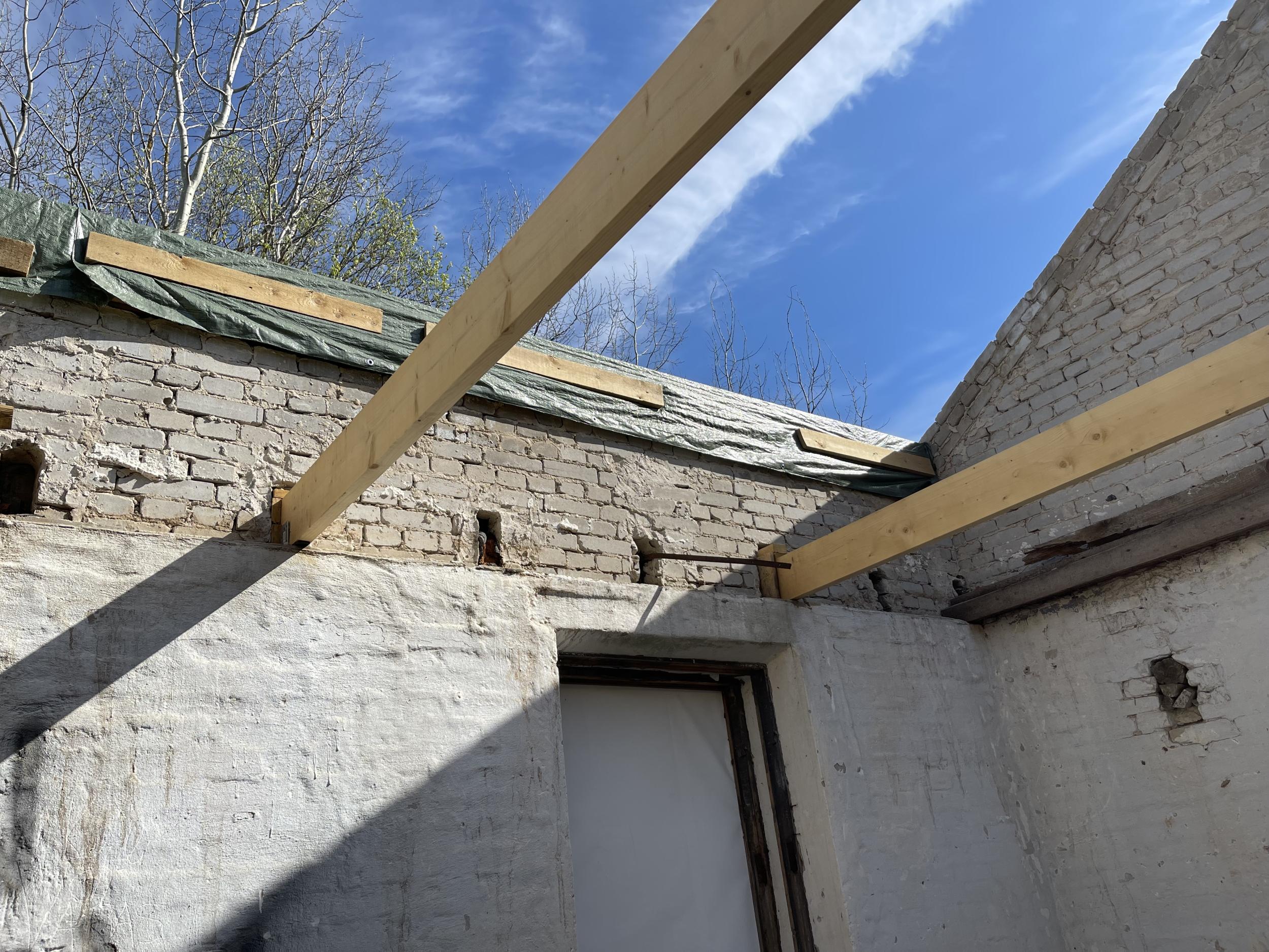 Soovin vana pumbamaja tööruumideks ehitada ja sellele uus katus ehitada. Hoone seest tühjaks tehtud. Katuse ehitamiseks vaja ilmselt tellinguid või kasutada vanu katuse sarikaid töötasapinna valmistamiseks. Poole hoone ulatuses lahtine kelder (kunagi asusid seal veetorni pumbad). Vana katuse viil tsentrist väljas (üks katuse pool 30m² ja teine 36m²) Kas oleks mõeldav need kivist viilud müürideni maha lammutada?