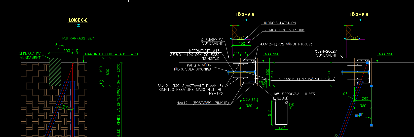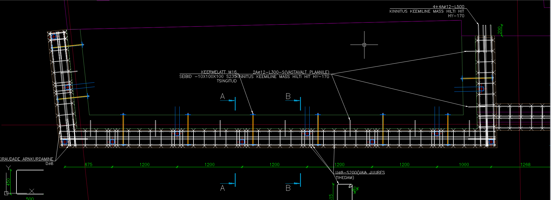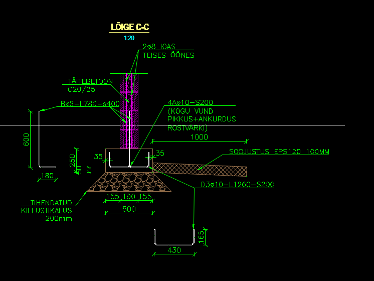Ainult betoonitöö. Armeerimine, raketis, betoneerimine, sidumine vana vundamendiga, raketis lahti, plats puhtaks.
