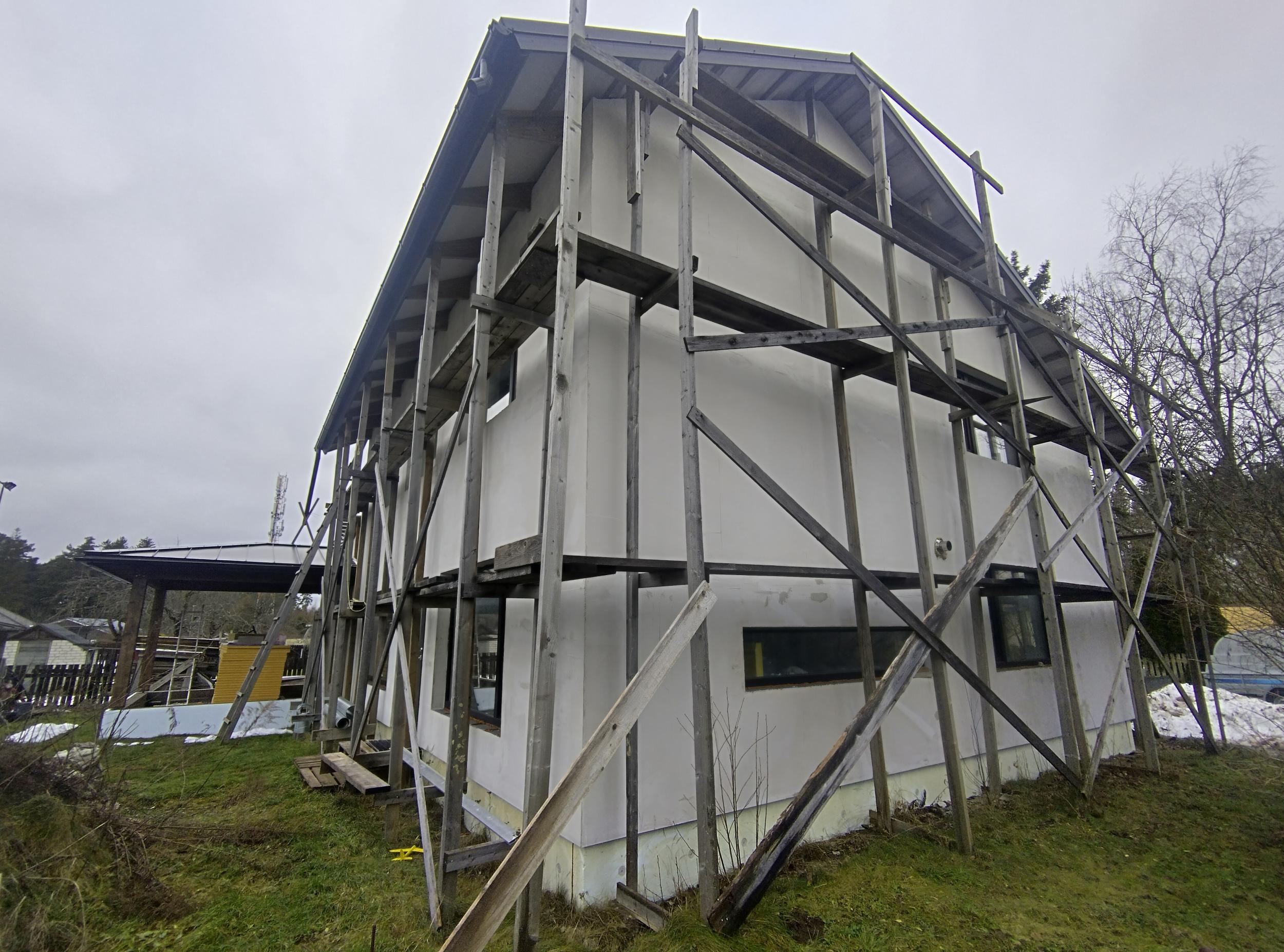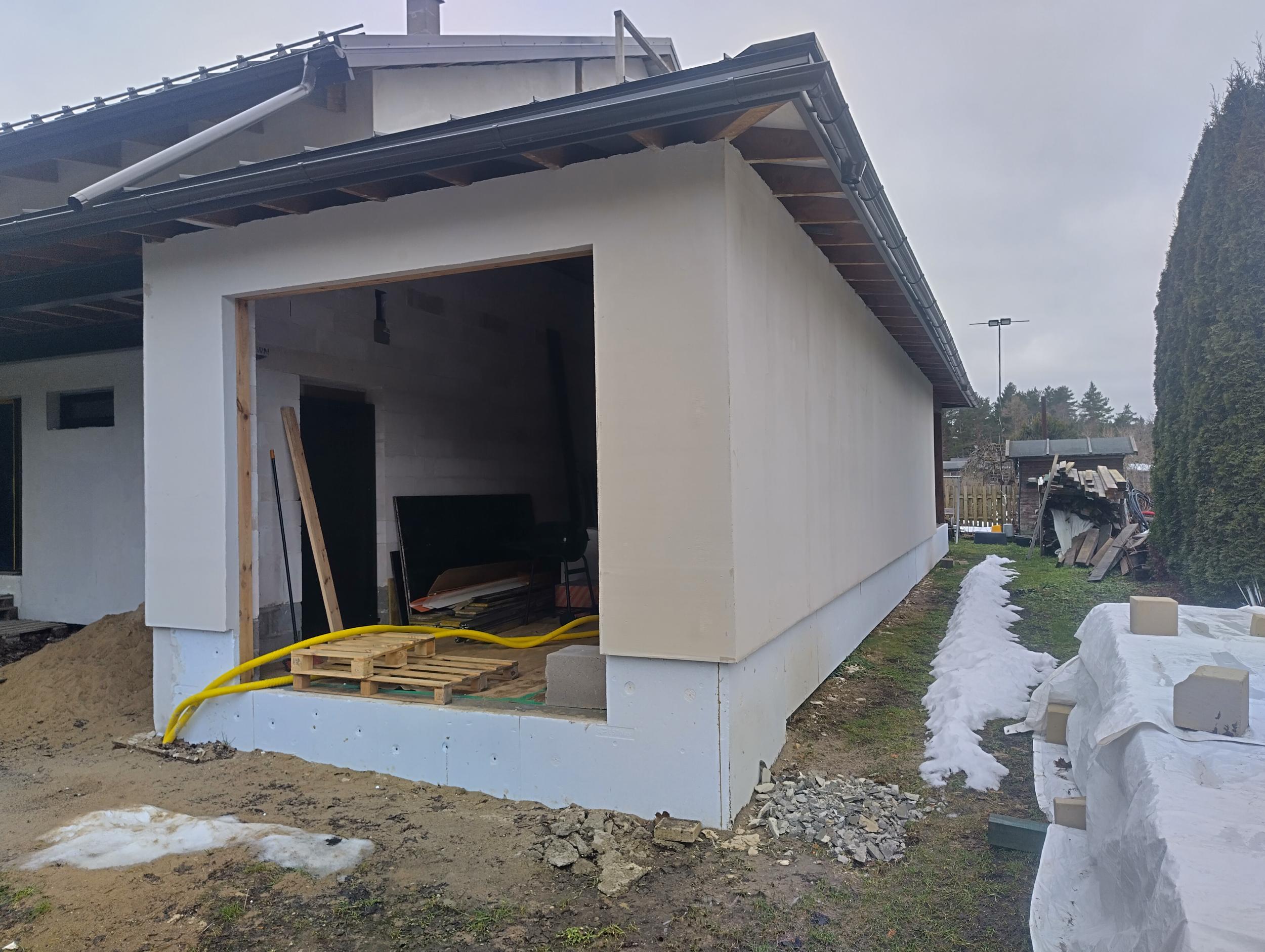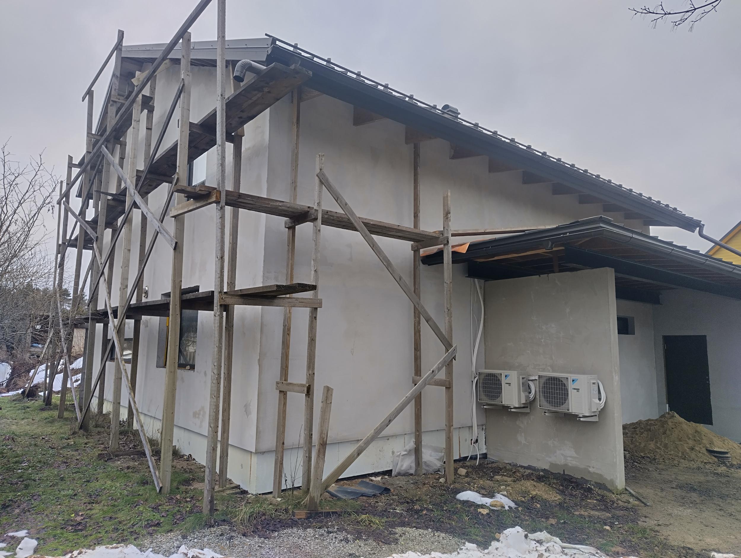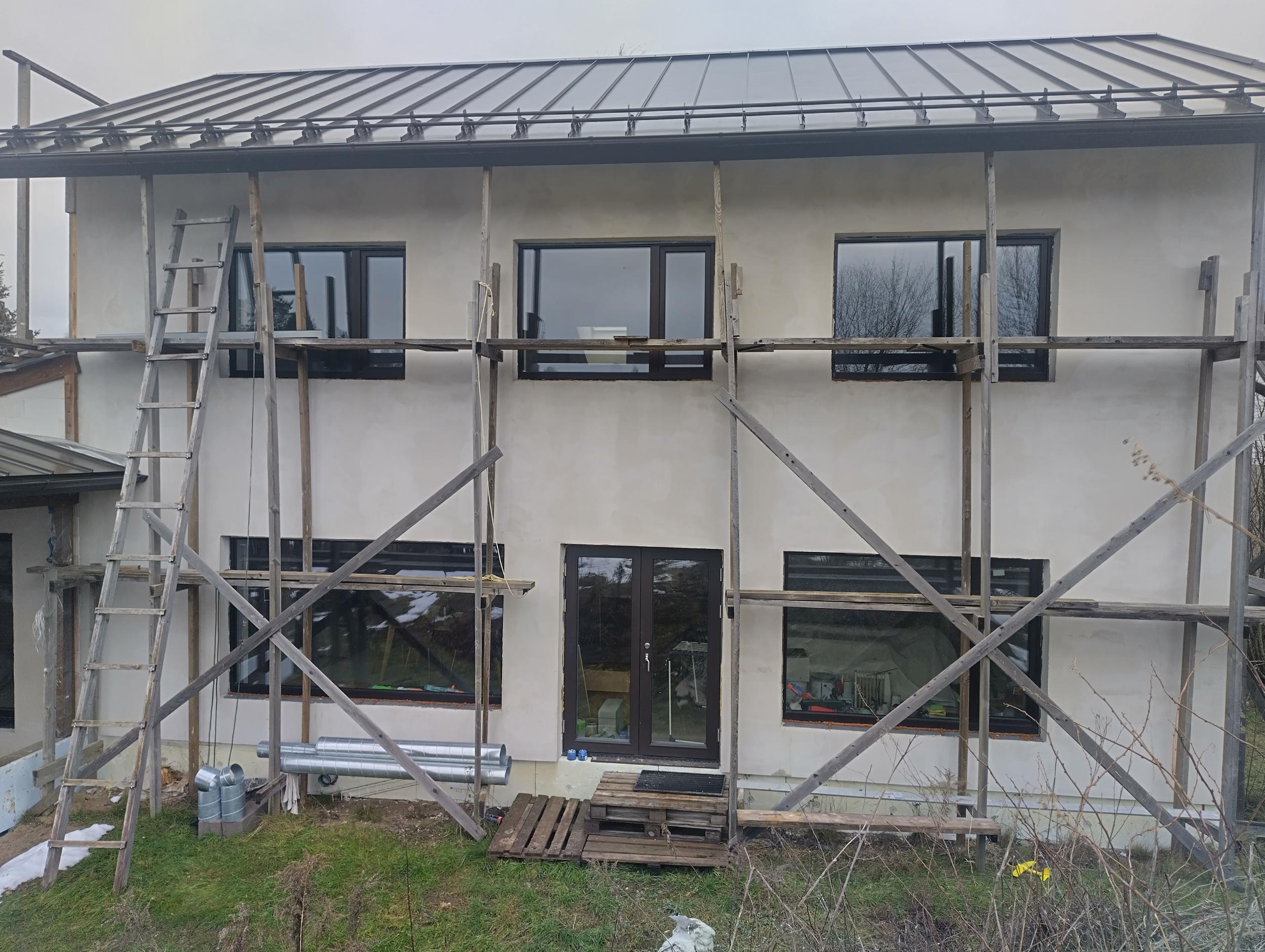 Praegune olukord: 2022 aasta sügisel maja fassaad iseehitaja poolt võrgu ja armeerkrohviga Capatect Dämmkleber 185M kaetud päikese ja ilmastiku kaitseks. Maja osa soojustuseks on seinas 30cm EPS silverit ja garaaži/sauna osa soojustuseks 10cm krohvitavat villa. Garaaž sai krohvitud armeerimiskrohvi ja võrguga 2024 aasta lõpus. Maja osal ümber puidust tugevad tellingud. võimalik lisada tellingukile ja võrk tellija poolt. Krundil olemas trassi vesi välikraanist ja elekter. Tellija paigaldab ise akendele kaitsekiled.