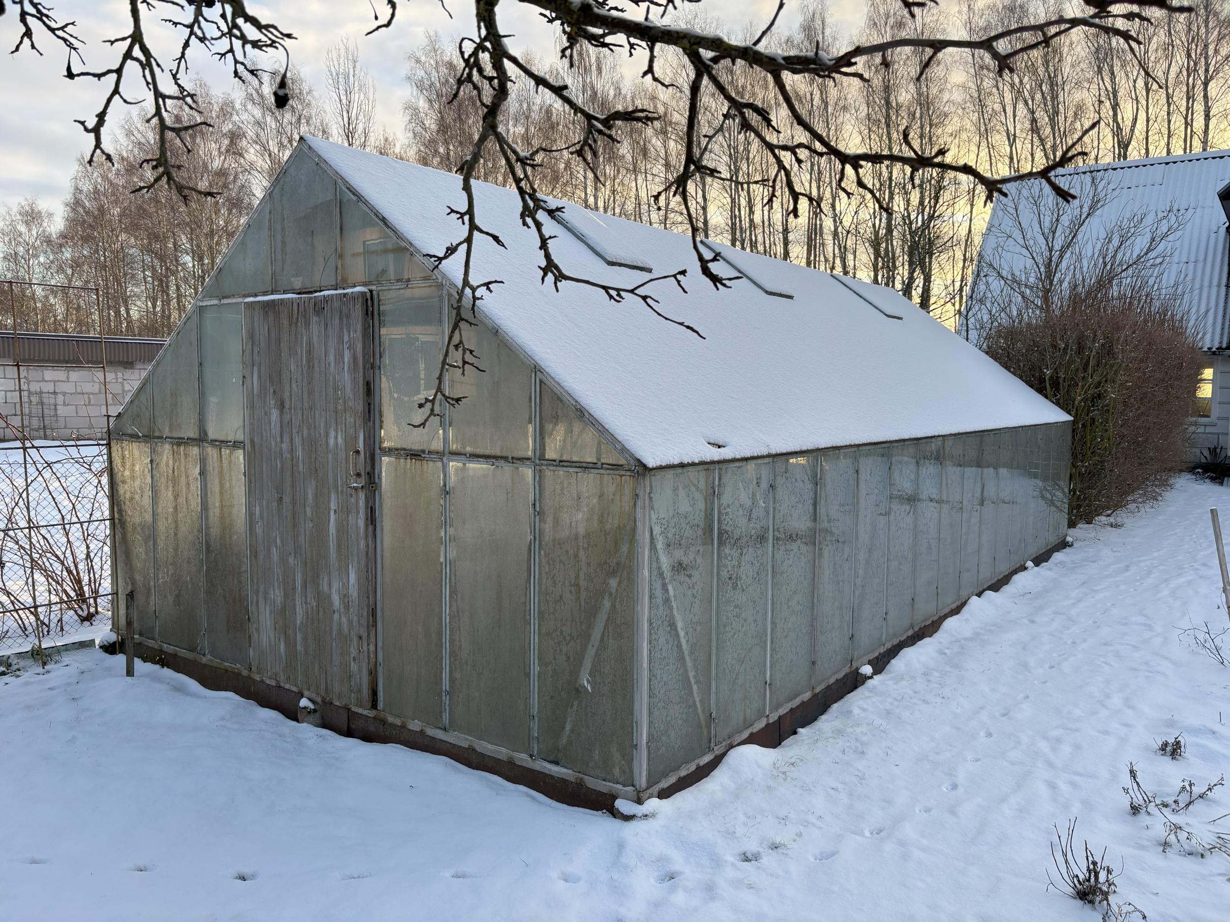 Olemasolev metallraamiga vaivundamendil klaasitud kasvuhoone suurusega 4x8m, kõrgus 3m, asukoht Paikuse.