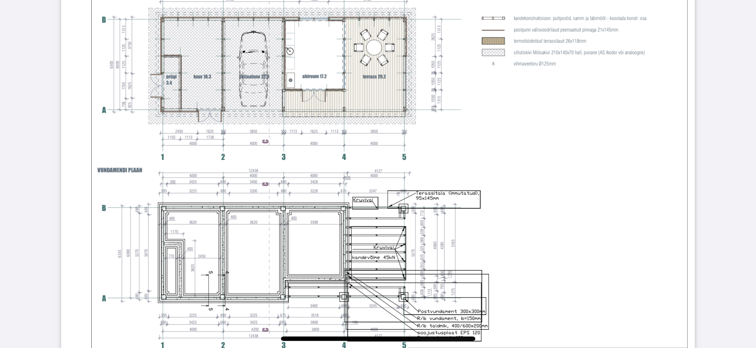 Vundament 23000 Puitkarkass 12000 Fassaad ja avatäited 12000 Terrass 5900 Katuse fermid ja plekk 17000 Seinad ei ole villatatud, vaid lihtsalt puitkarkass nagu hankes küsitud. Sillutuskivi väljas pool sokli ääres ja hoones sees koos killustiku ja muude aluskihtidega ei ole arvestatud. Eraldi kokkuleppel võime neid ka teha. Ennem kui võitjaks kuulutate võtke vestlusaknas ühendust, sooviks mõned asjad üle täpsustada, et hiljem möödarääkimusi ei oleks. Hange.ee küsib ca 1100 eurot tenustasu, mis lisandub pakkumusele ehk siis kokku 71000eurot koos km-ga. Võime ka mingi osa töödest teha, näiteks vundamendi või terassi. Ennem võitjaks valimist peab kindel olema, et saame lwpingu sõlmida ja tööd tega, sest kui valjte võitjaks, aga tööd ei telli tuleb Teil hüvjtada hange.ee teenustasu. Seetõttu on mõistlik enem võitja valikut potensiaalse Töövõtjaga vestlusaknas lahendused ja lepingutingimused läbi arutada. Kaetud tööde aktid ja ehituspäevik mahub ka hinna sisse. Garantii 2 aastat. |