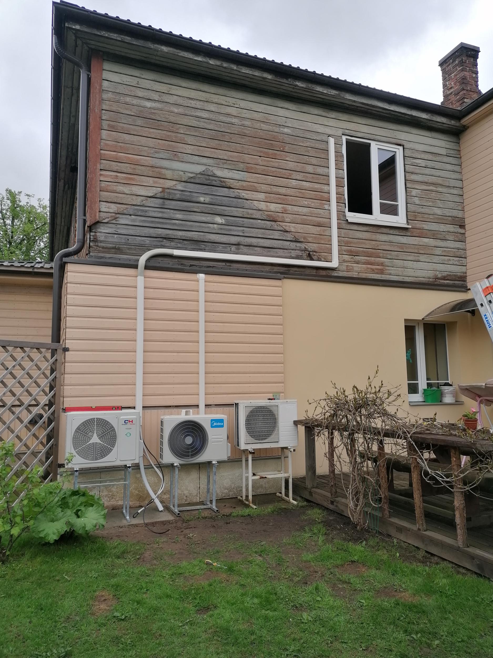 Teisel korrusel on vaja vahetada fassaadilauad, alla panna tuuletõkkeplaat (soojustust ei tule, et maja mõõdud ei muutuks eriti). Vihmaveetorud jäävad samad. Õhksoojuspumba torukatte saab tööde ajaks maja seinast lahti kruvida ja tööd nende alt teha.