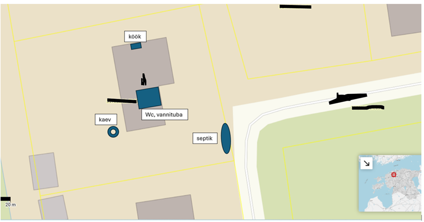 Septik tuleks paigaldada teisele poole hoonet (kaevust 20-22 meetrit) .