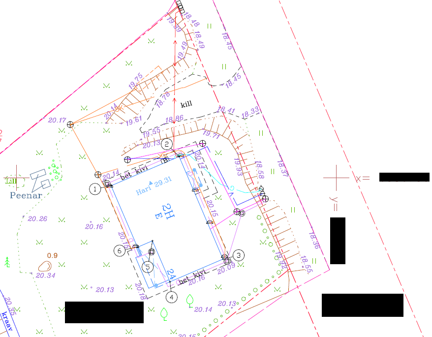 Geodeesia pärast majaehitust. Vajalik on täiendada tugiseina ja treppide mõõtmeid. Ja tundub, et maja kõrgust pole veel mõõtud. Ülejäänud mõõdud võeti ja lisati joonistele.