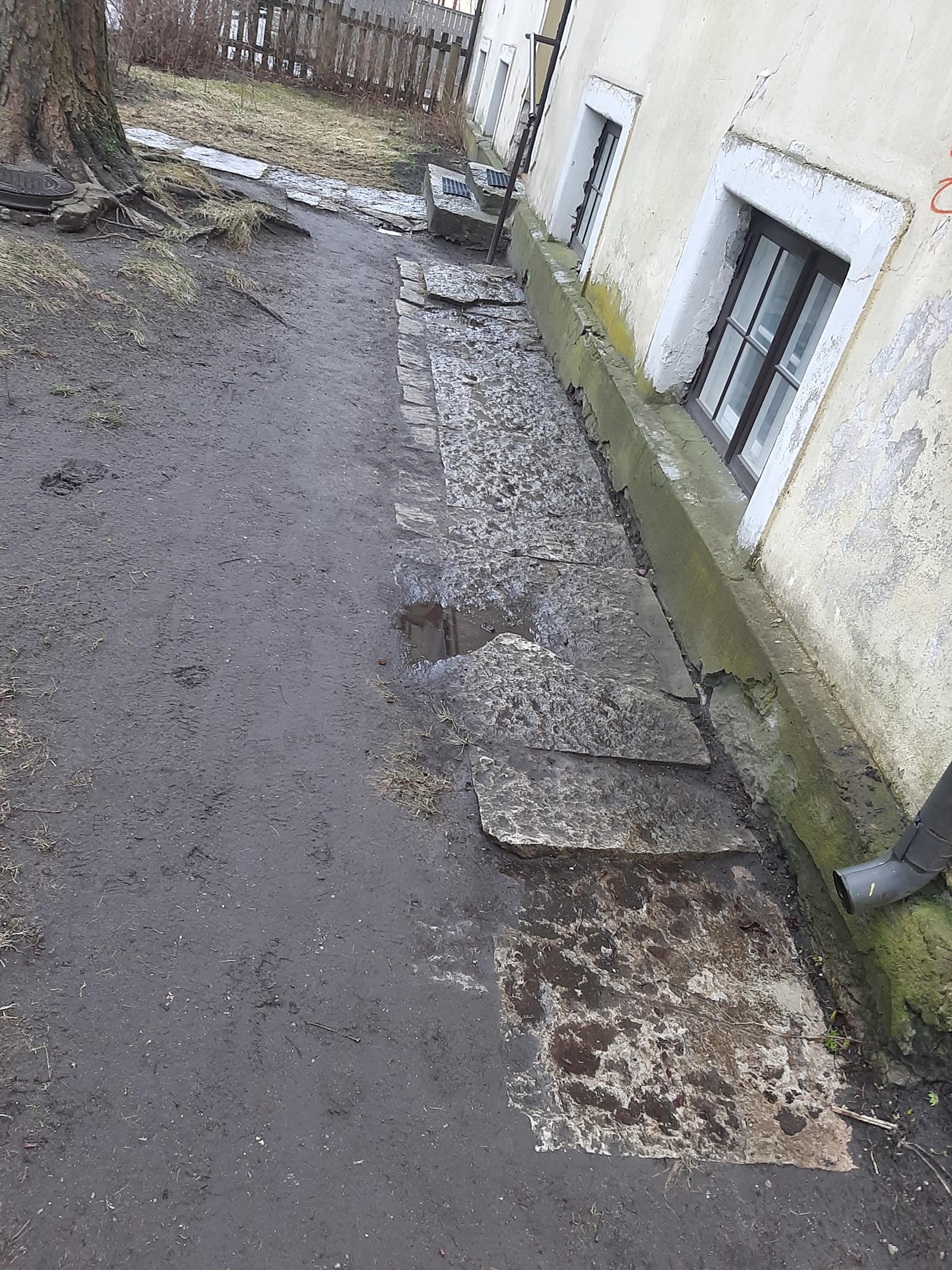 5. Paekivist kõnnitee plaatide korrastamine ja tõstmine vajalikule kõrgusele (lisatud fotod ’paekivist kõnnitee’ ja ’paekivist kõnnitee 2’)