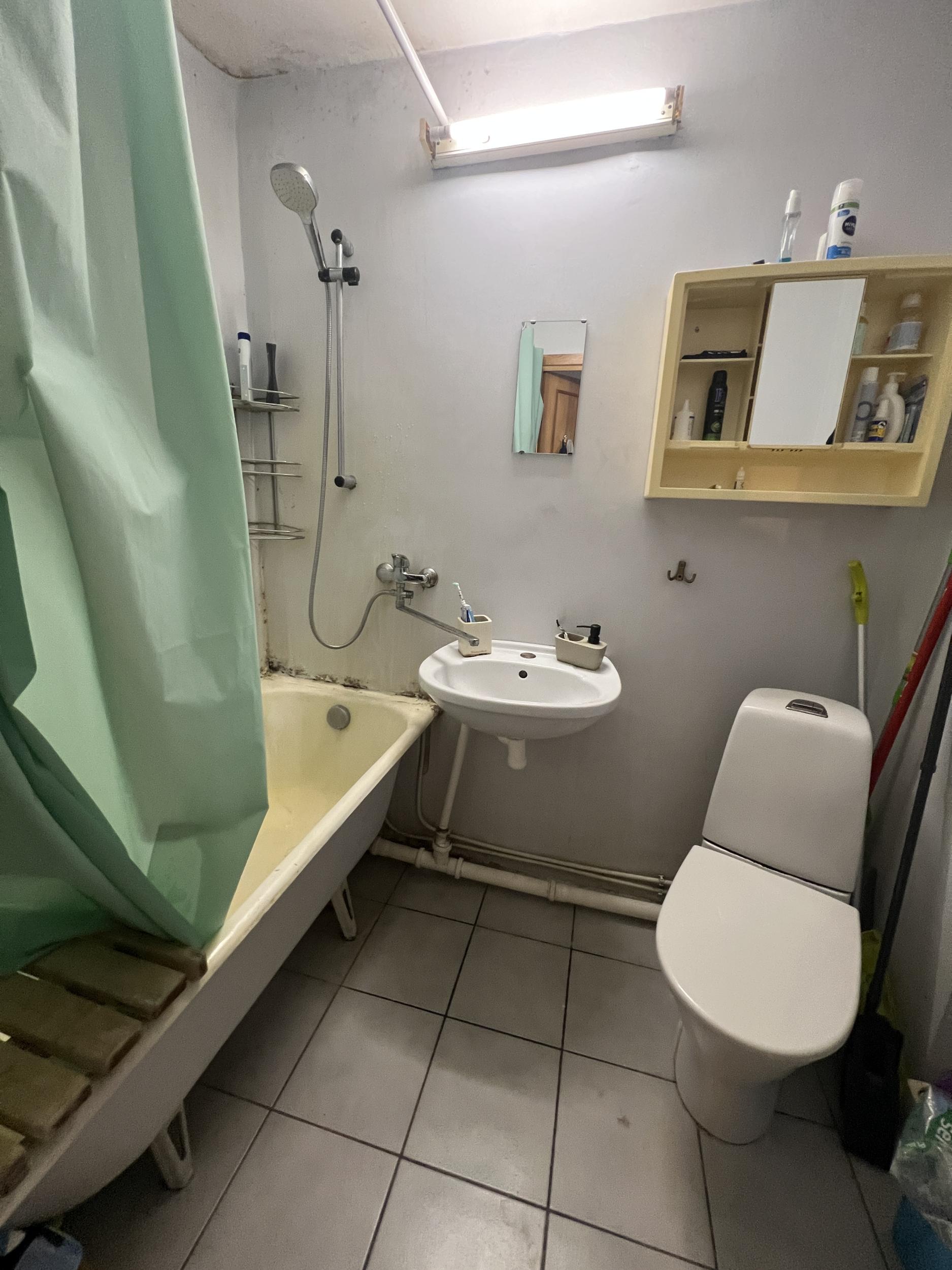 Vaja vana sisu kõik välja lammutada, vajadusel kanalisatsiooni püstaku vahetus, uus torustik, elektrijuhtmed, valmidus pesumasinajaoks. Põranda hüdroisolatsioon, plaatimis tööd (võib kaaluda, ka osaliselt plaatidega, osaliselt värvida, ehk eelarve on tähtis), uus WC, hügieeni dušhi paigaldus, lae viimistlus, valgustid, ukse vahetus.