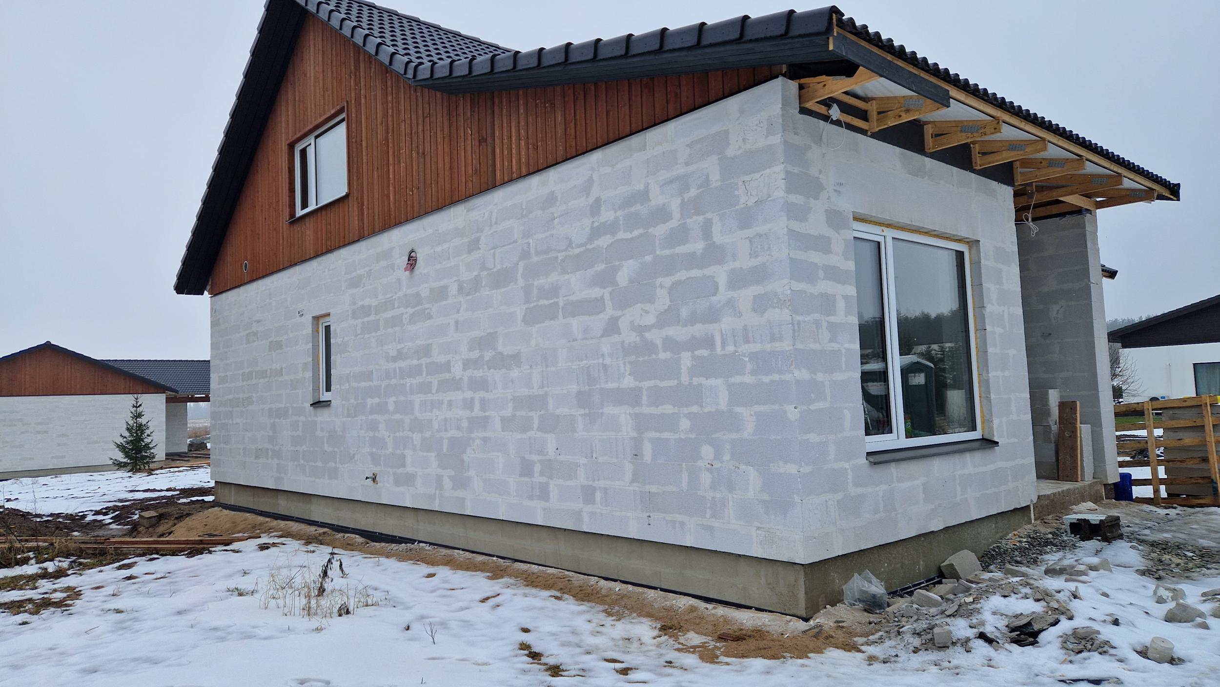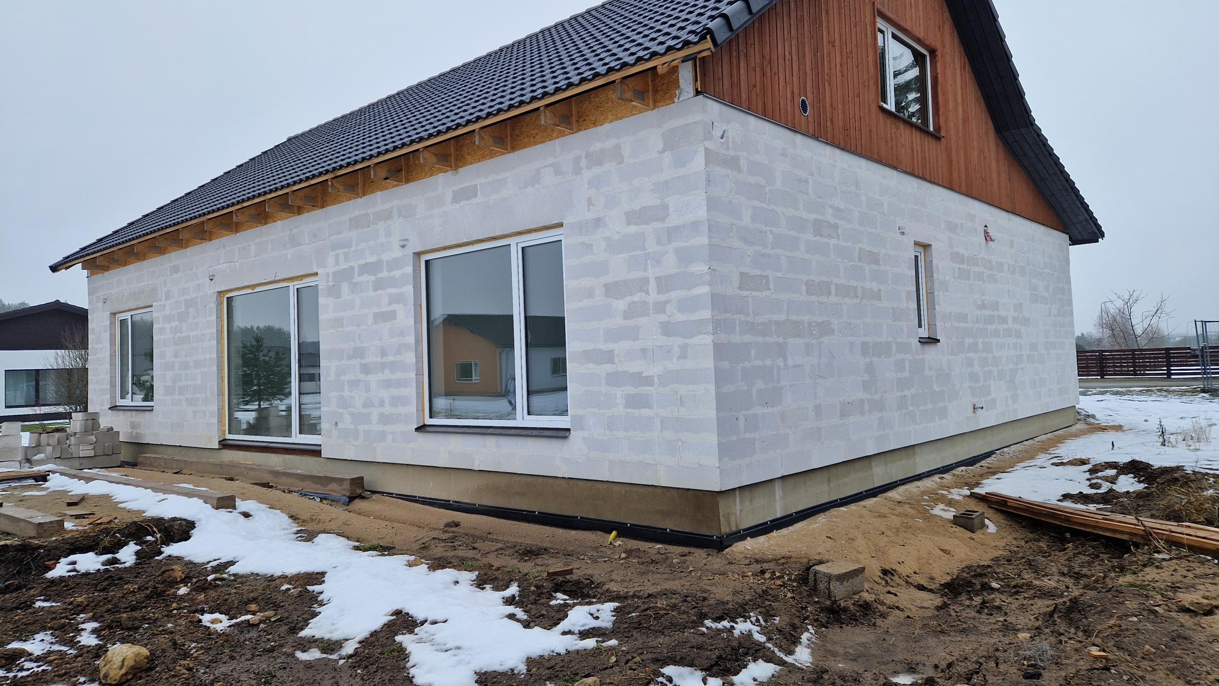 Maja seinad on baurocist. Seinad krohvitakse silikoonkrohvi või akrüülkrohviga.