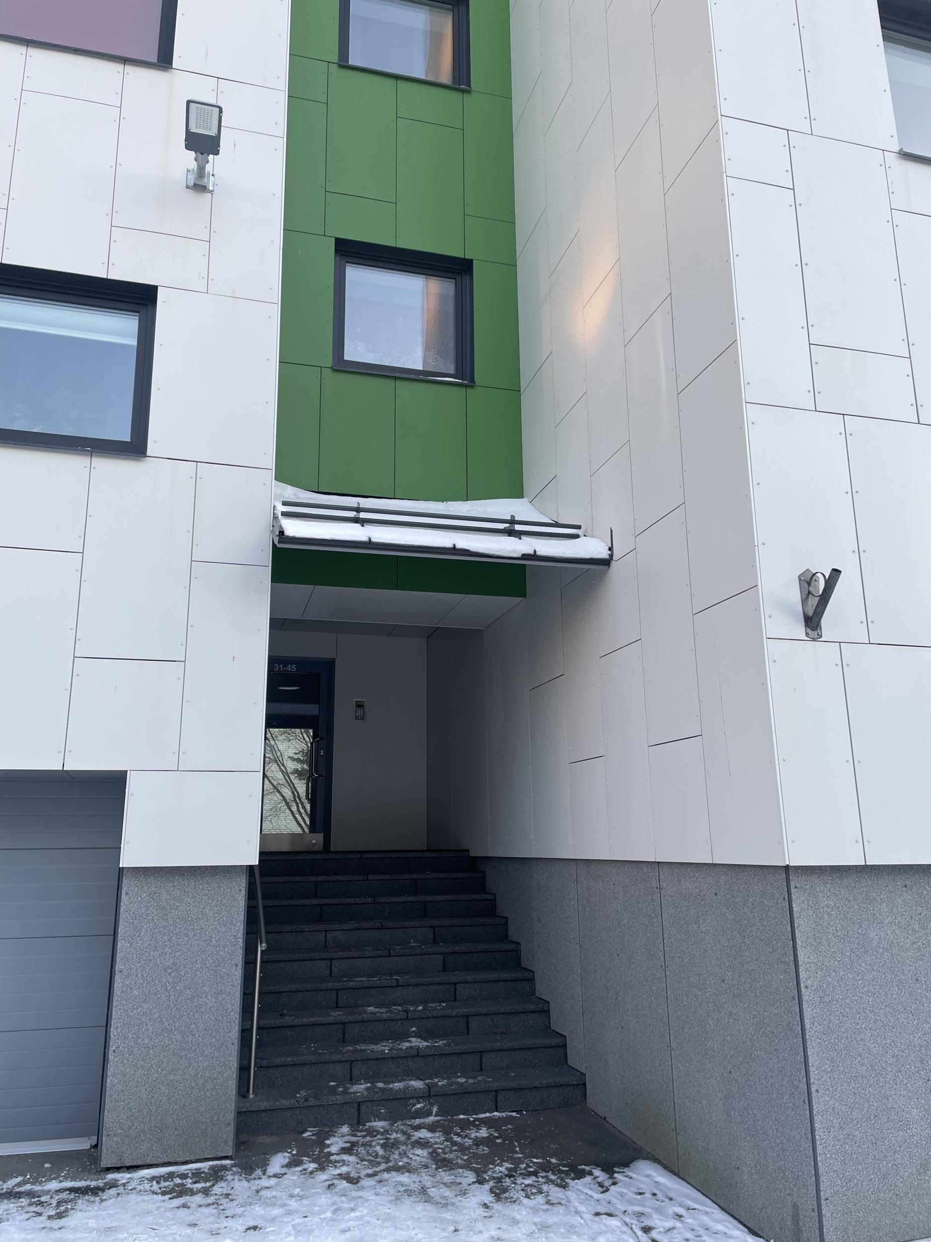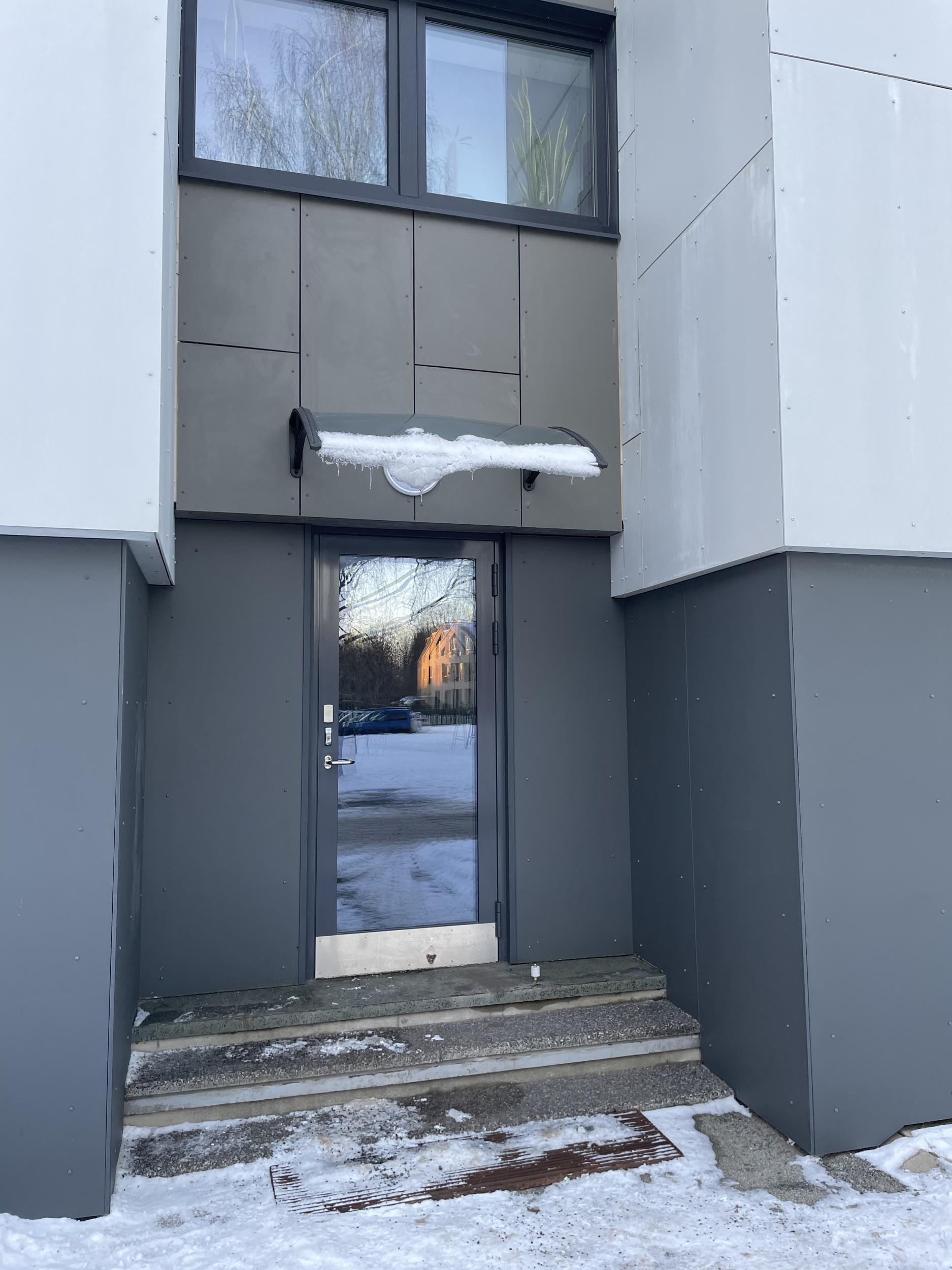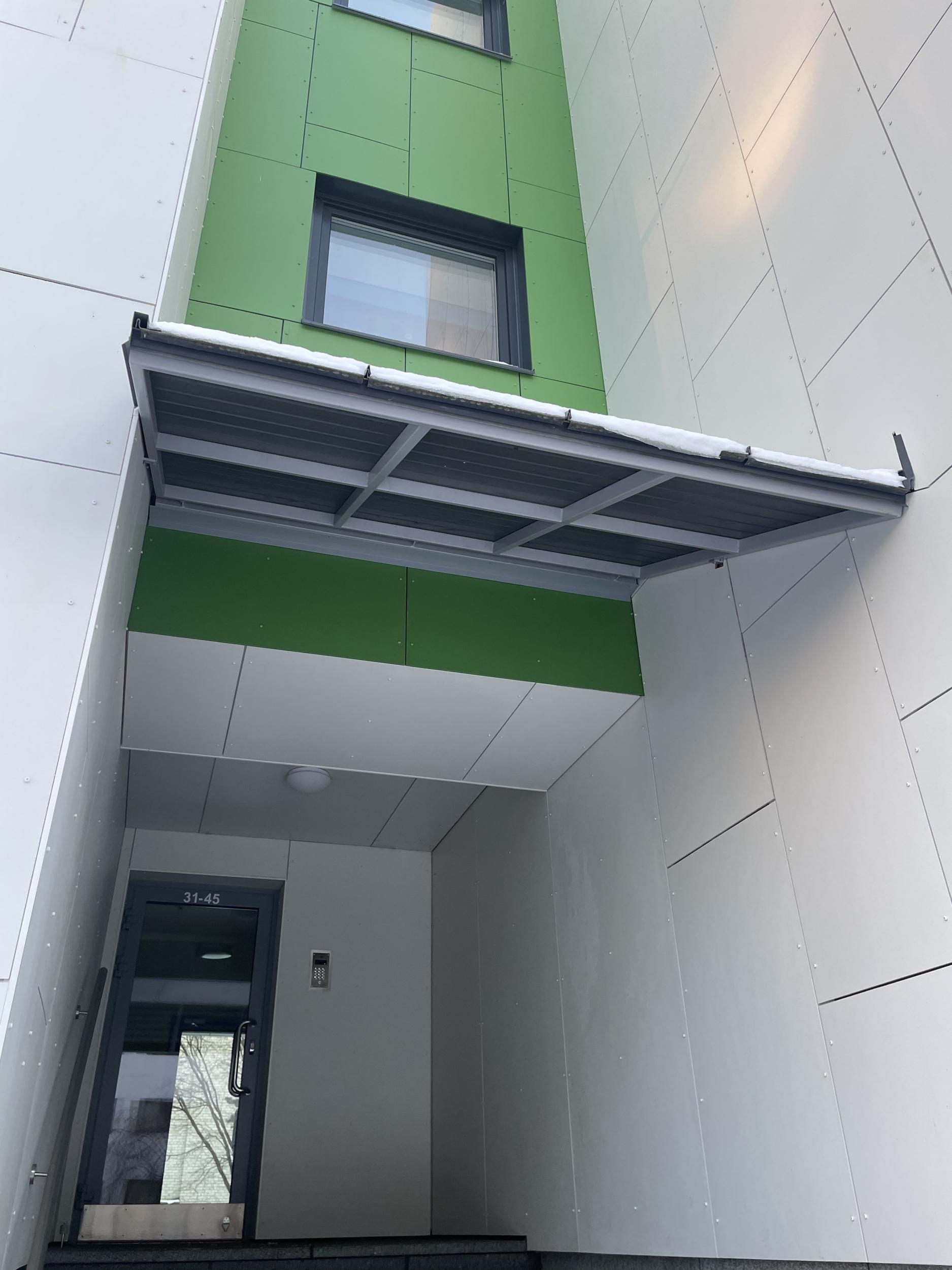 Esimesel kahel pildil on hetke olukord. Kahel viimasel pildil oleks tulemus mida soovime. Ühesõnaga vaja kahele trepikojale ehidada varikatused.