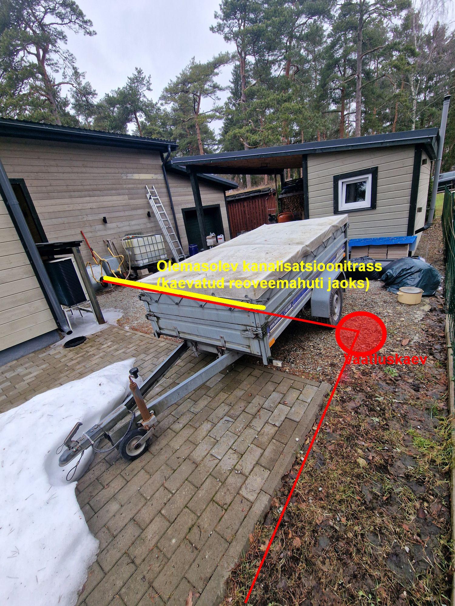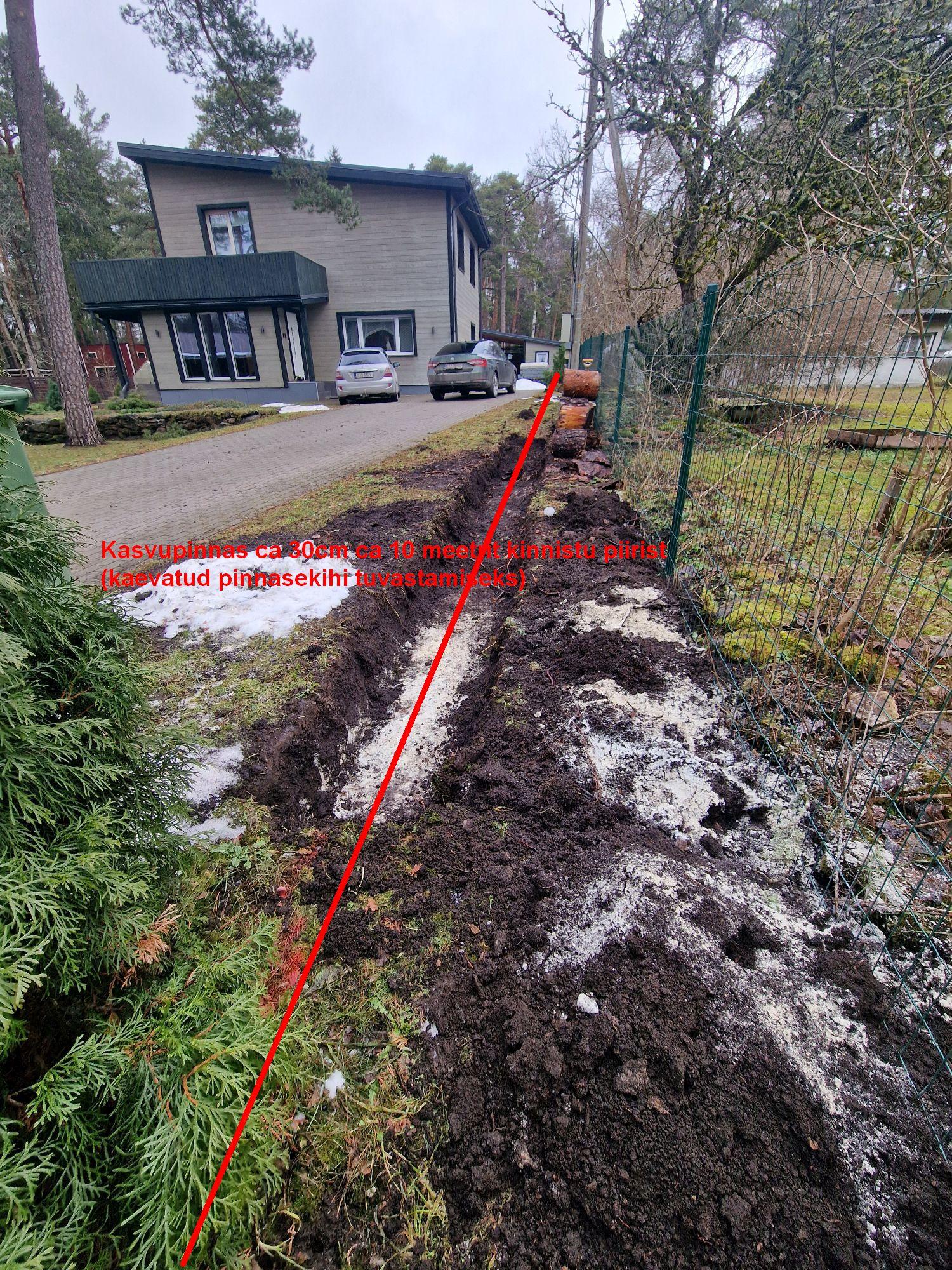 2. Kaevama 40m kraavi liitumispunktist hoone veesisendini. Veetorude paigaldamissügavus on vähemalt 1,70 m toru peale. Töövõtja peab arvestama sellega, et valdavalt on tegemist ühtlase paemassiiviga (vt ka pilte).