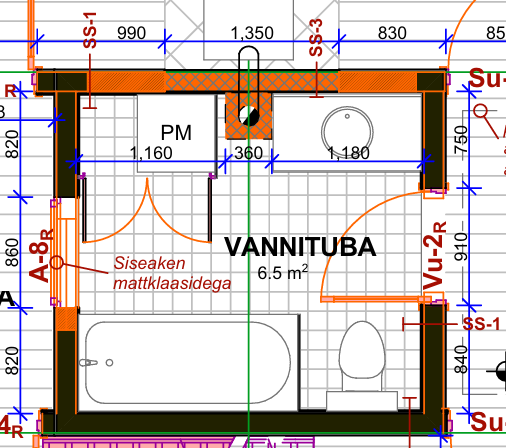 1 aknakoht ja 1 uksekoht. Nende kohale Ei tule silluseid.