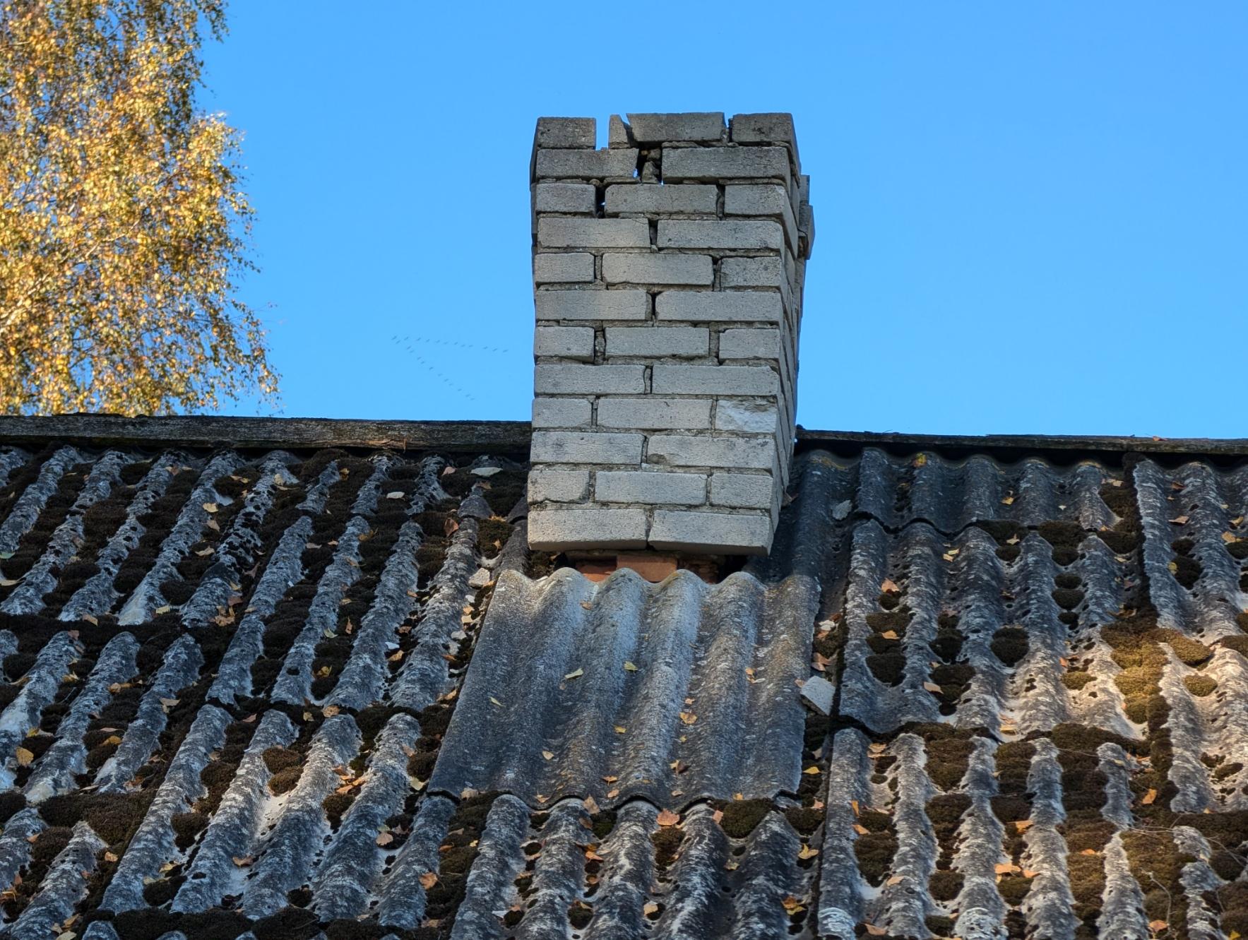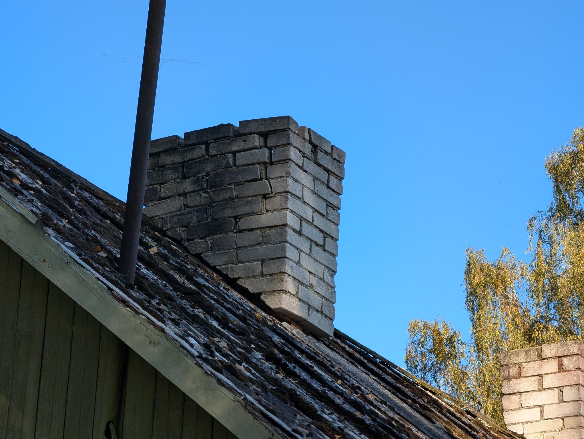 Lammutame ja utiliseerime vana.Laome uue puhasvuuk pitsi ilma voodrita punasest Lode Vat tellisest nõuetekohase kõrgusega.Paigaldame korstnamütsi.