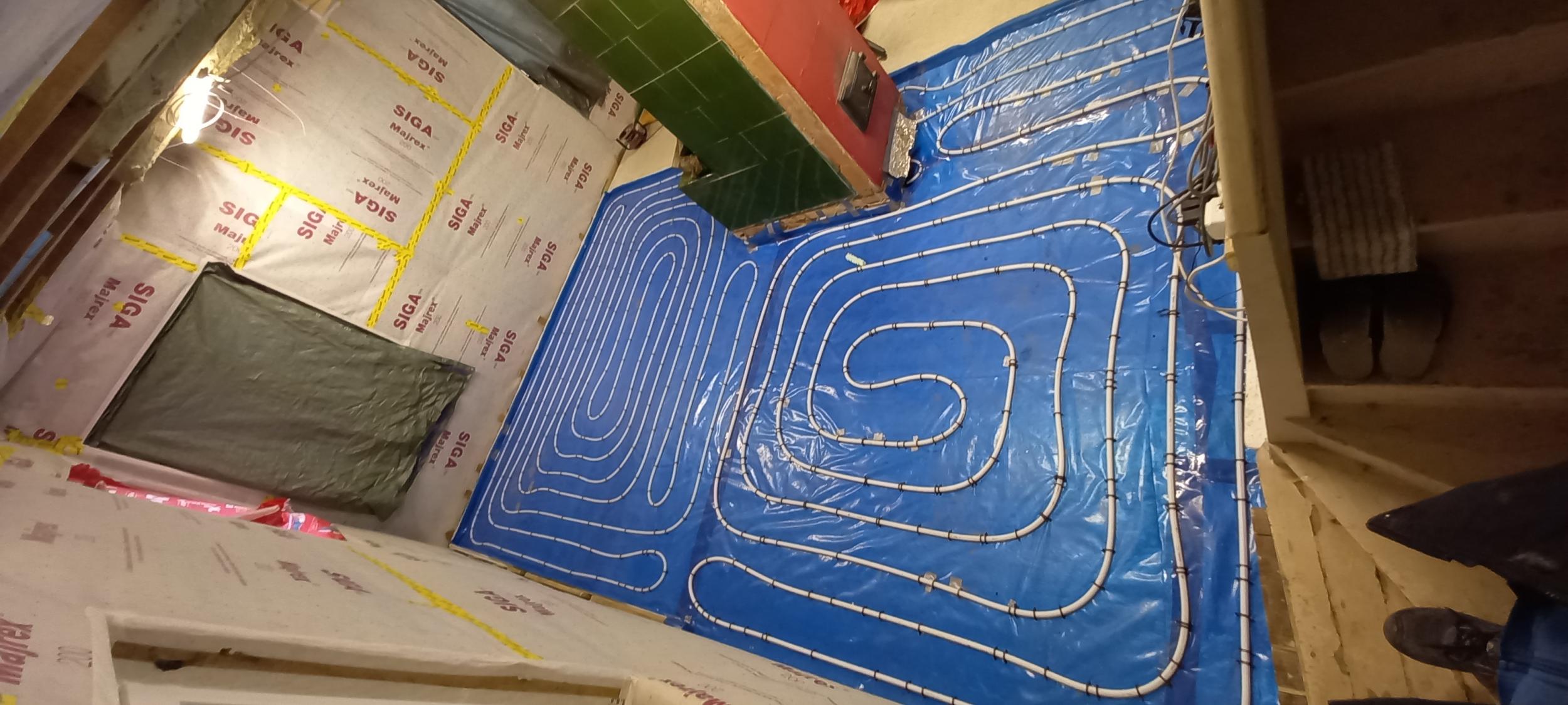 Põranda (põrandaküttega, torud paigas) pindala ~20,6m2 ja valu paksus ~20mm kuni ~55mm.