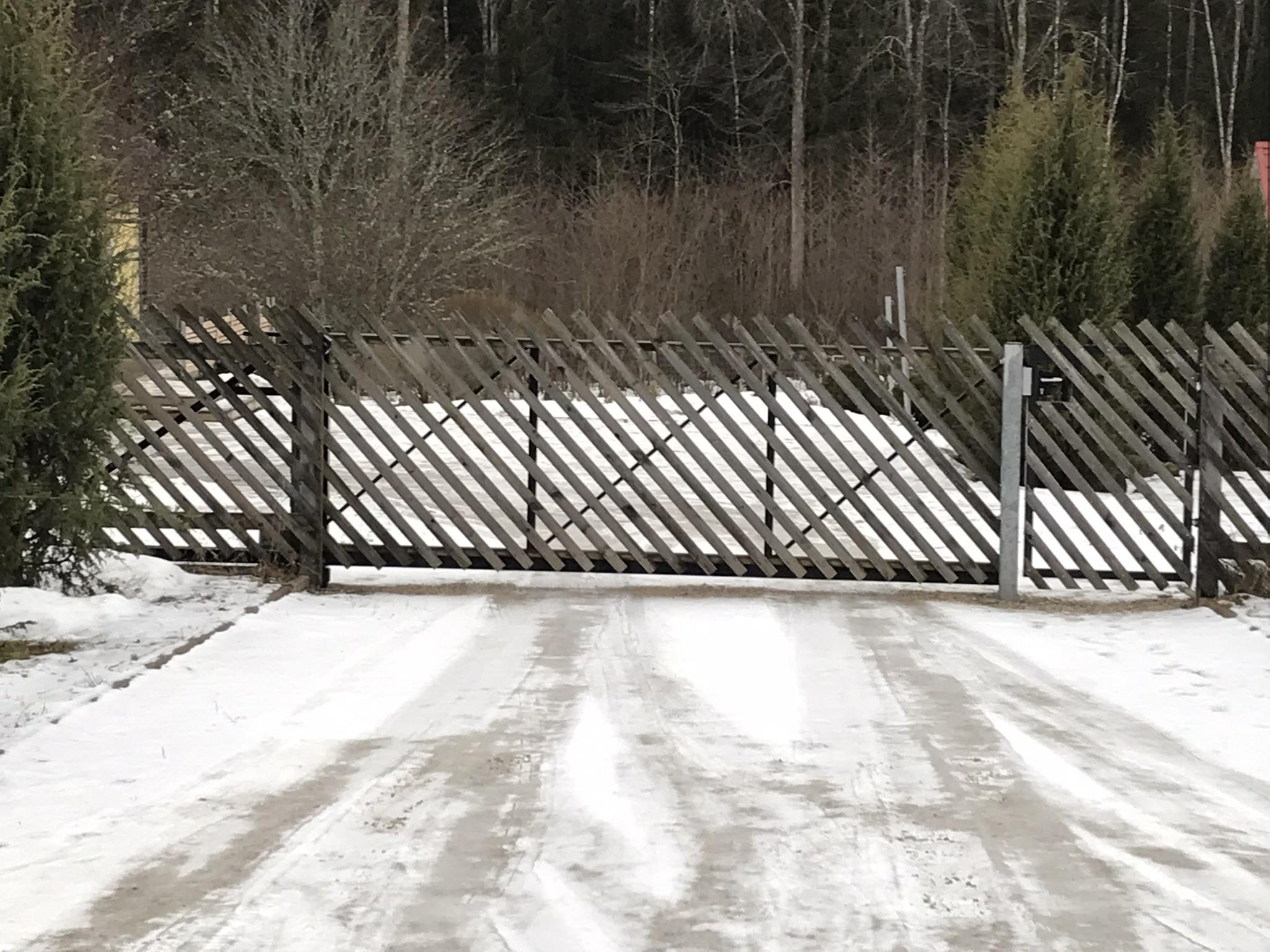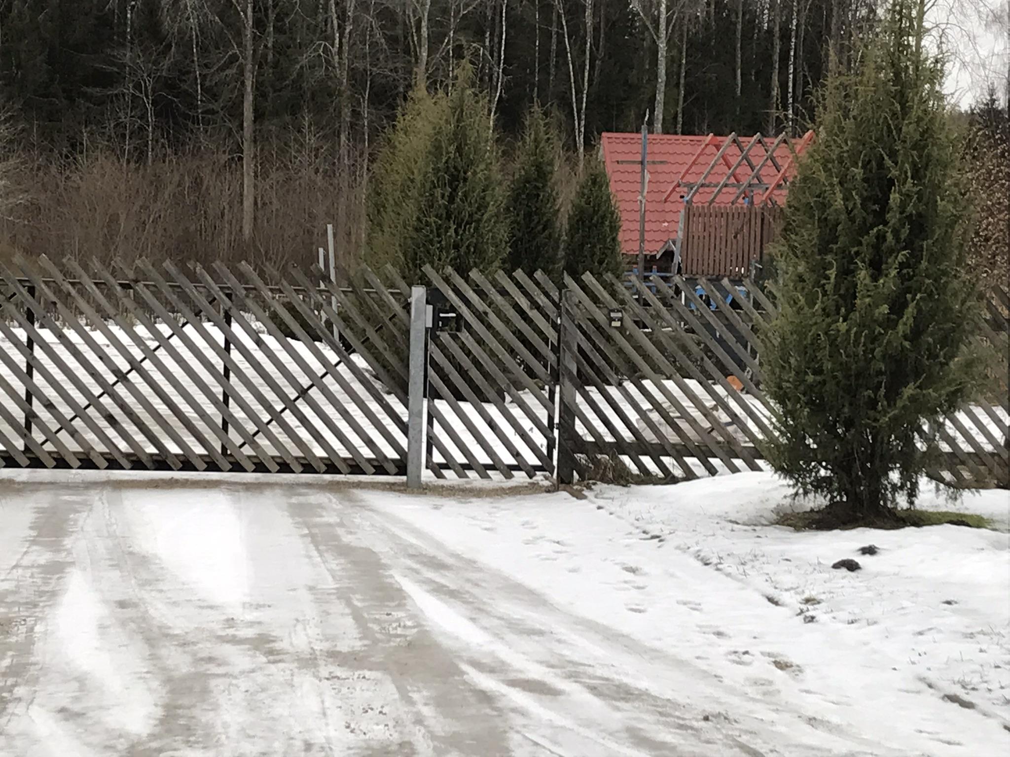 c) Puidust liugautovärav ja jalgvärav kombinatsioon (vt fotot)