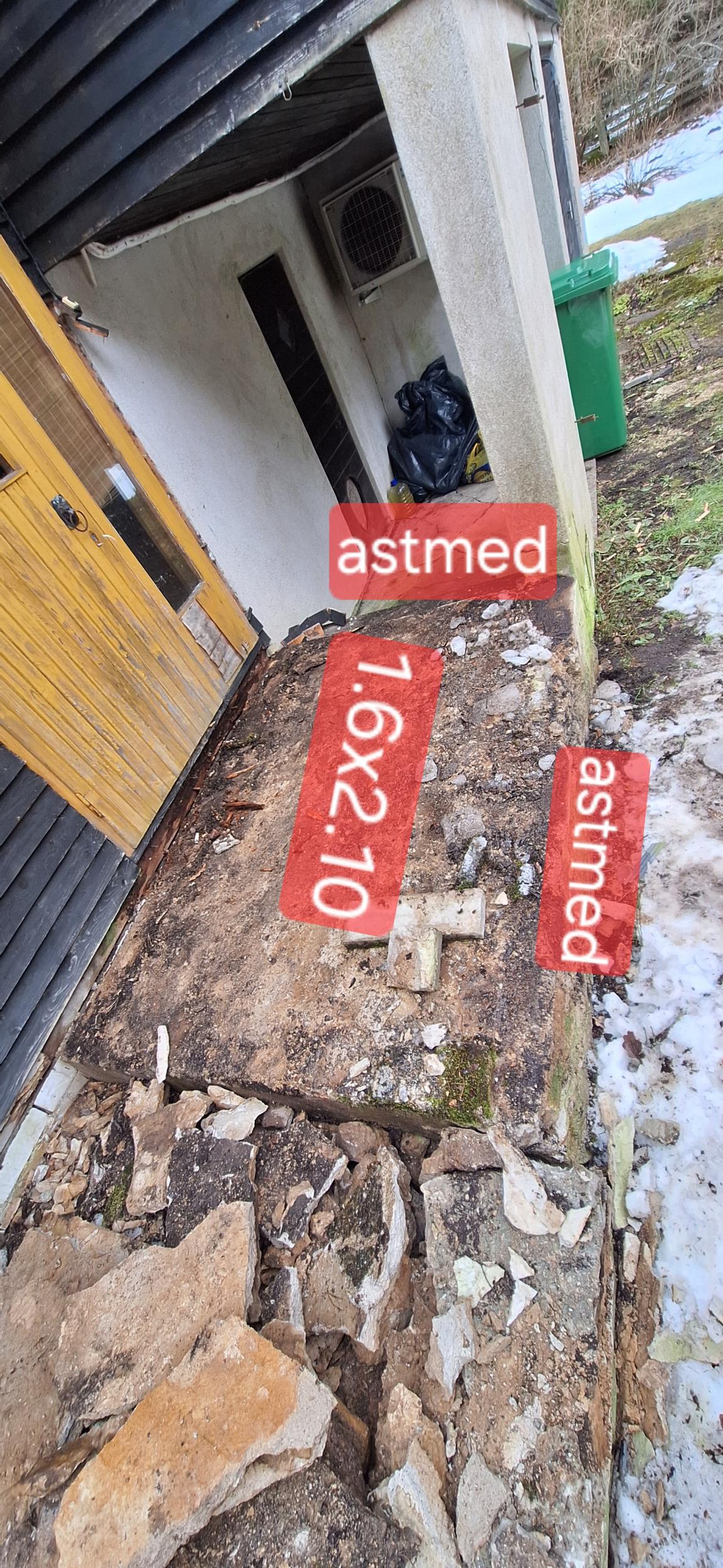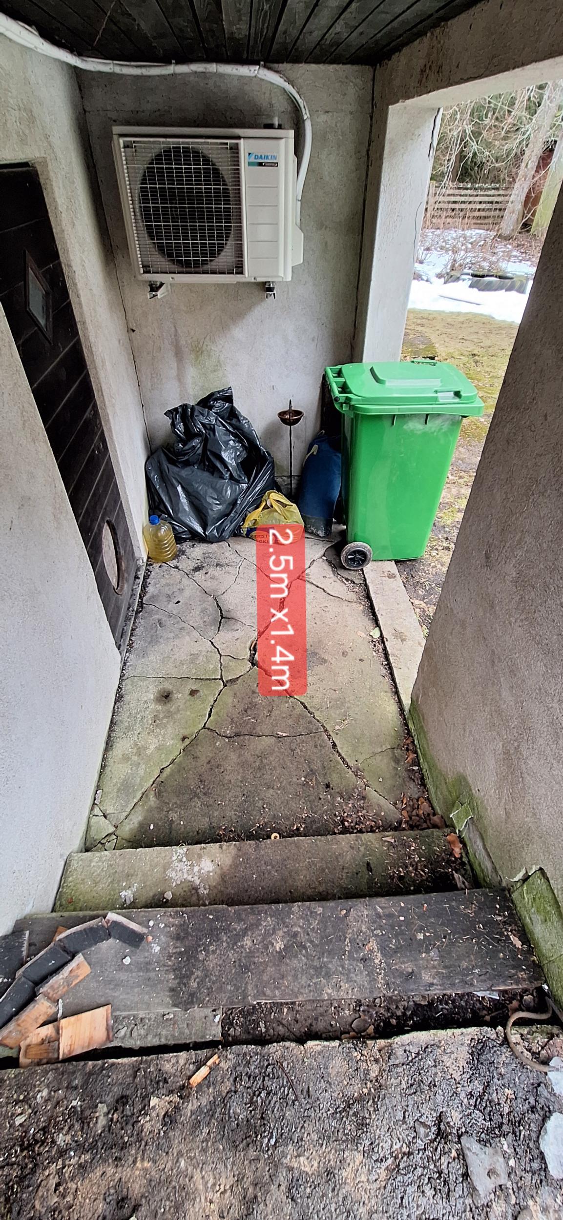 Vana trepi taastamine. Ühte suunda uued astmed. Teises suunas astmete taastamine.Trepi kõrvalt külmakerge. Selle likvideerimine ja uue tasapinna valamine.