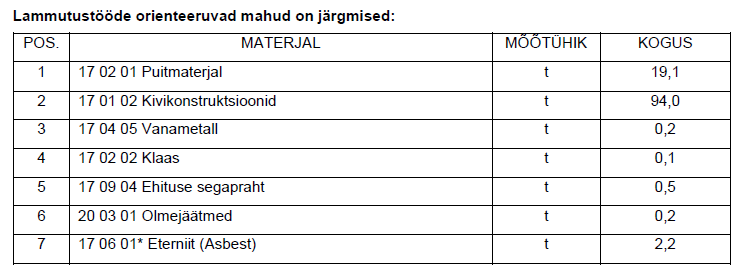 Pakkumine sisaldab eterniidi, palgi jm demonteerimist, pakkumine ei sisalda vundamendi lammutust (hilisemal kokkuleppel). Parimat |