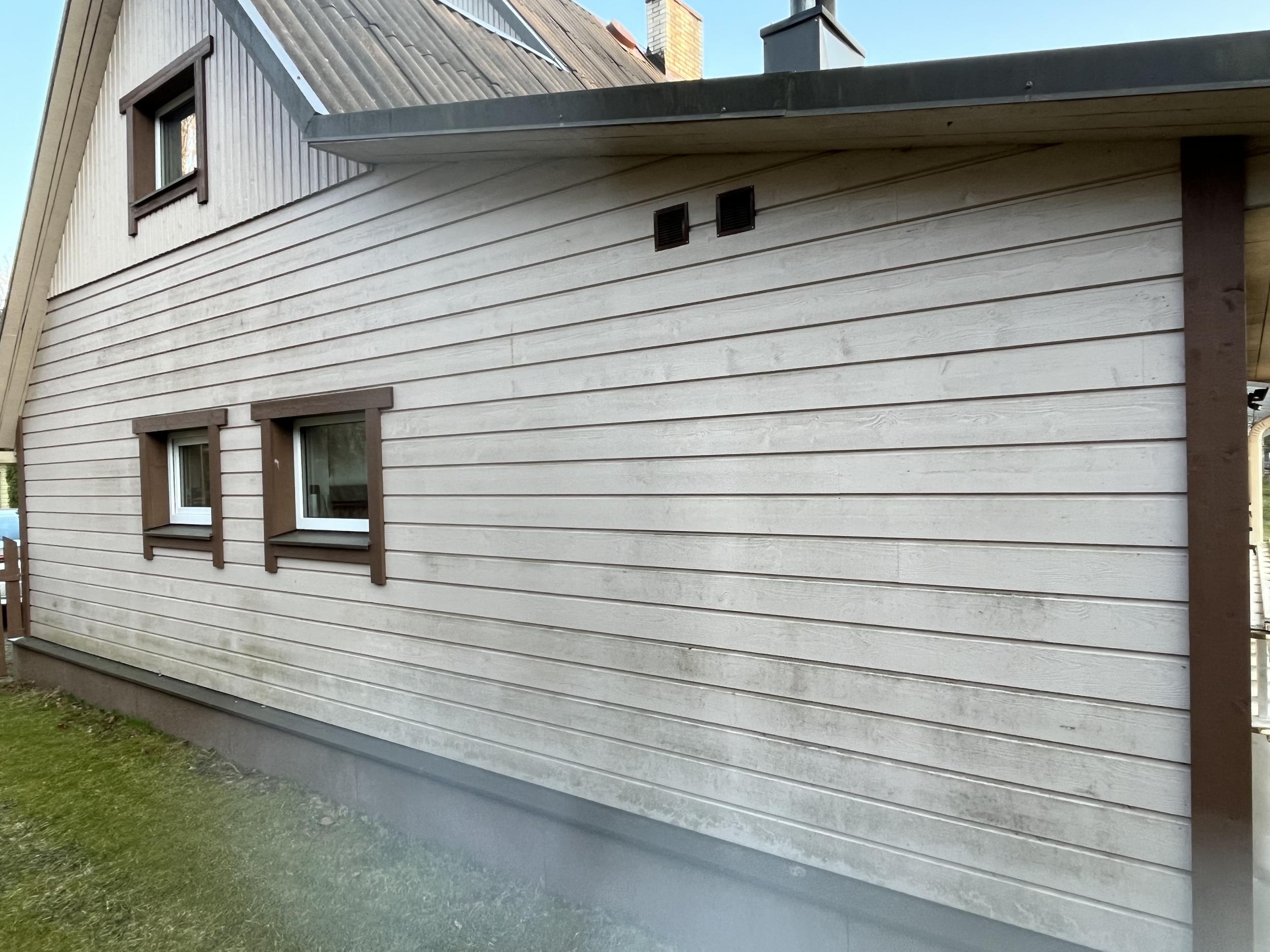 12 aastat tagasi paigaldatud laudis vajab maja päikese poolses osas uuesti värvimist ja varju poolsetes osades pesemist/puhastamist.