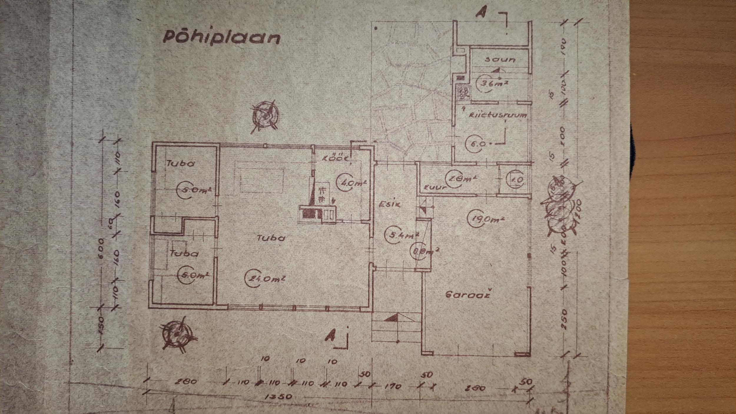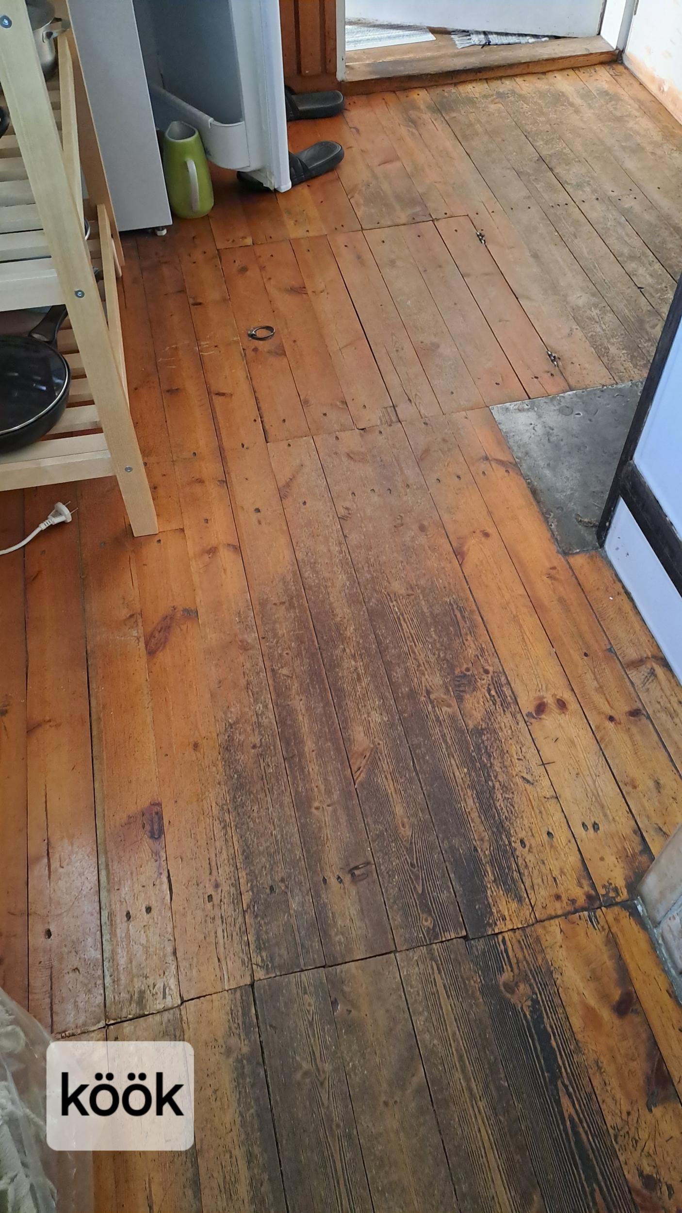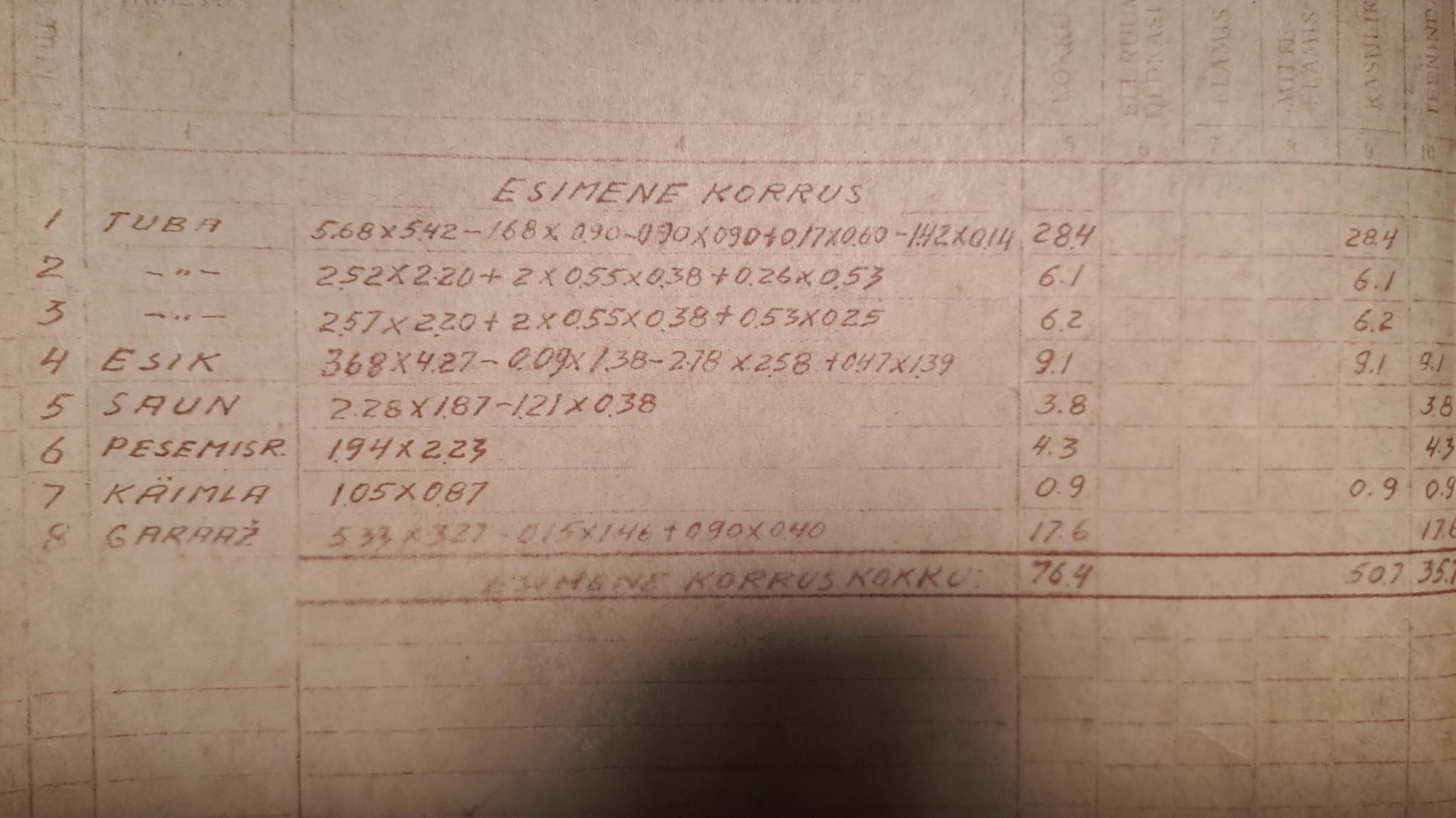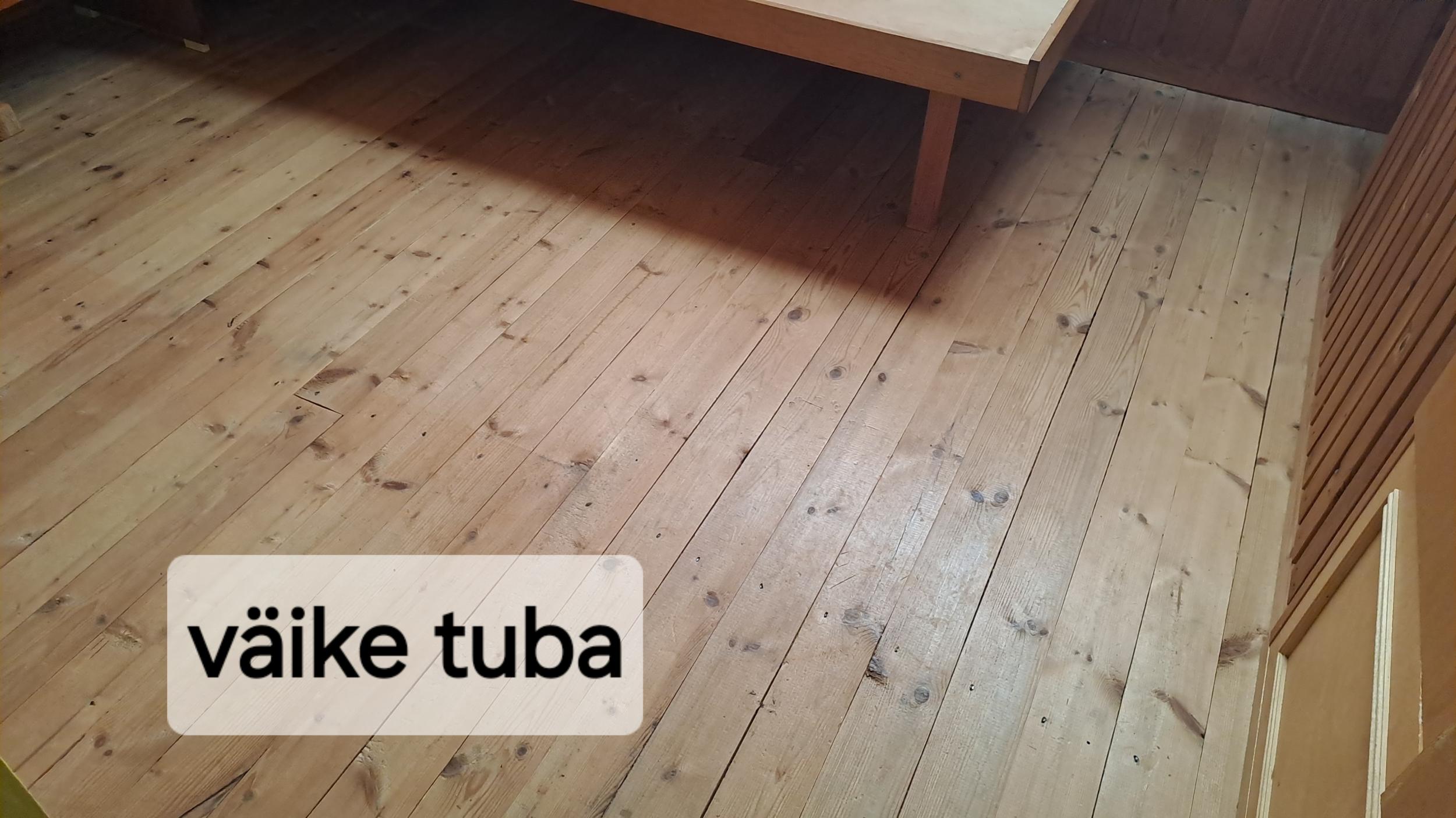 vaata põhiplaanilt pindasid. Kuur ja esik on ilma vaheseinata, seega üks suur esik kokku ja vajab lihvimist. Tuba 24m2 ja köök on kunagi lakitud.