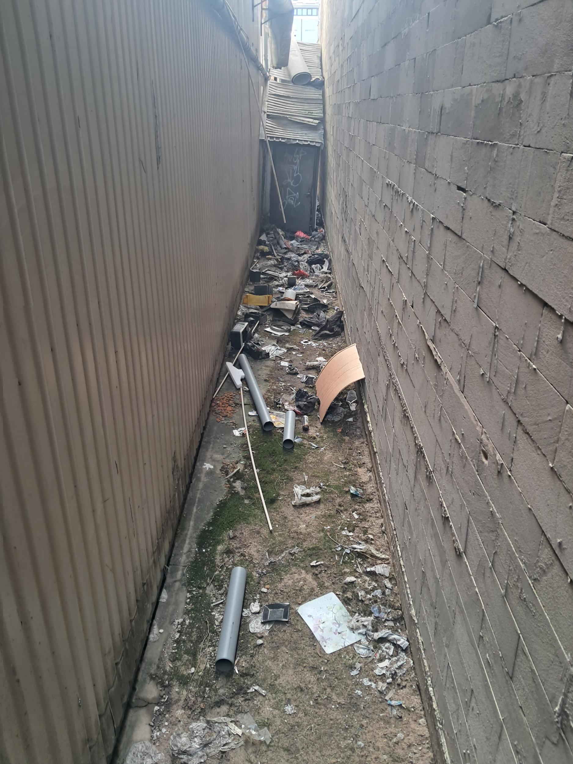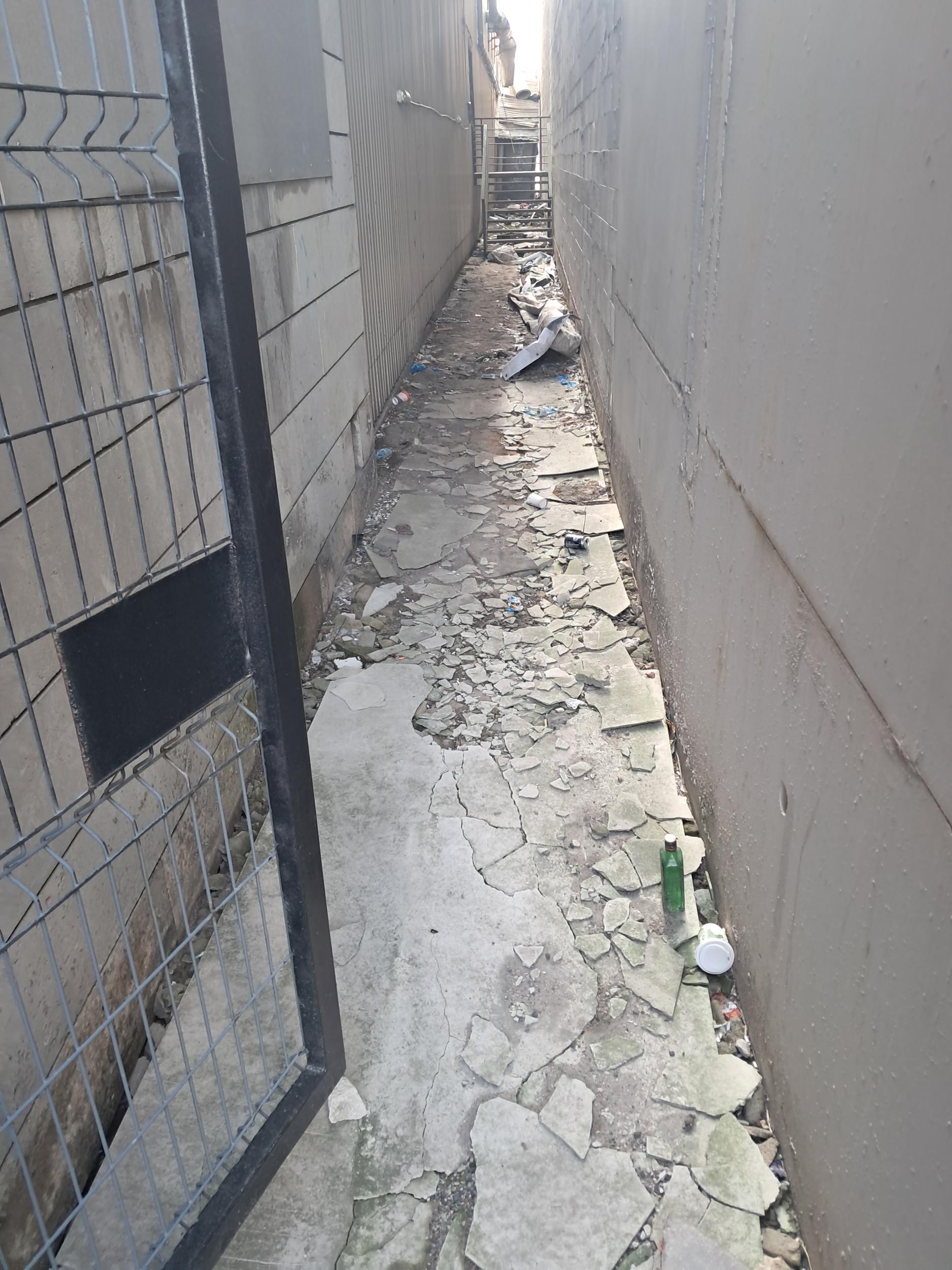 Koristada prügist hoonete vaheline ala, mille suurus ca 47m2. Laius ca 1m ja pikkus 47m.