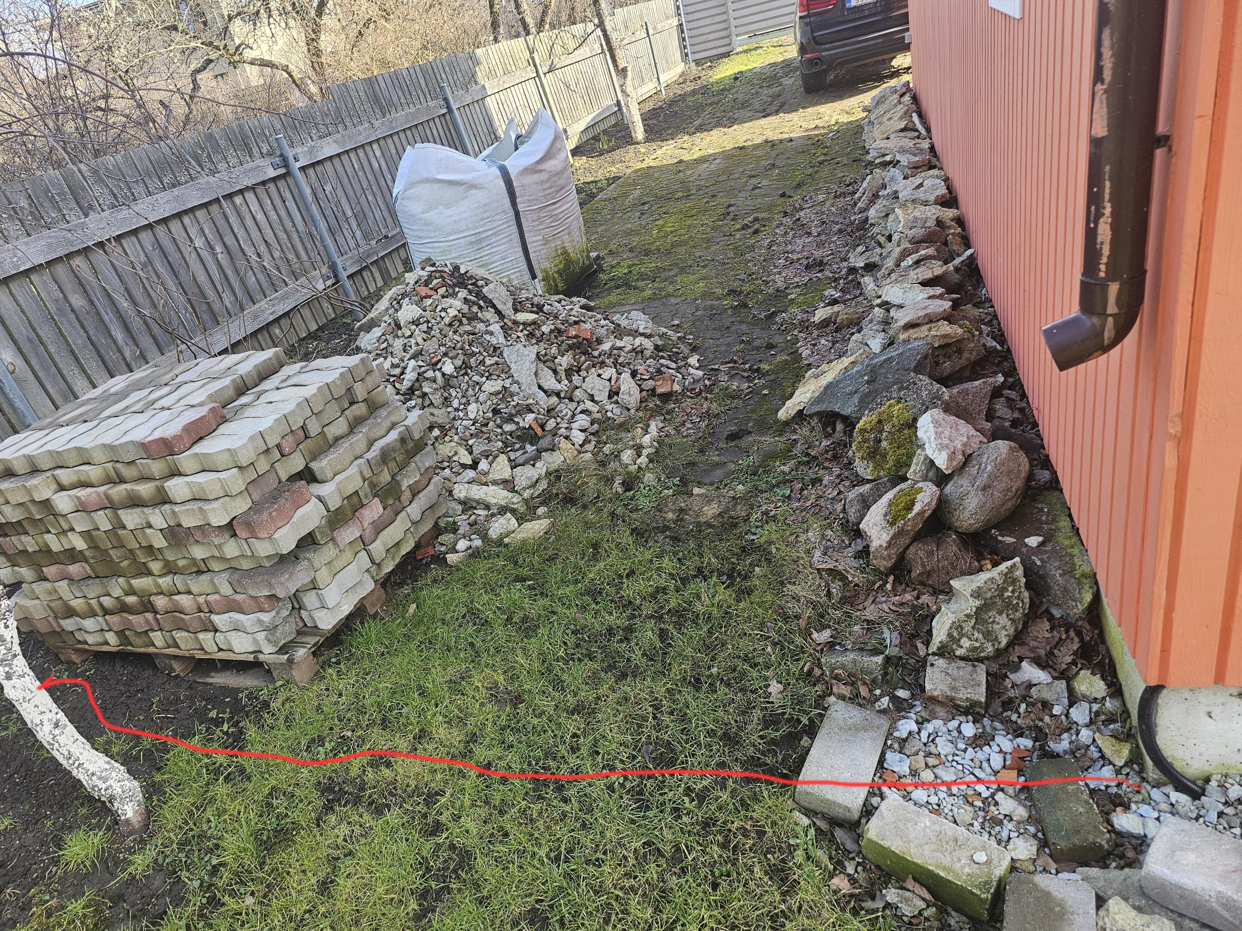 Panna geotekstiil, Paekivi sõelmed ja tihendada ära, kivi tagasi panemine, siis täida vahed liivaga ja veel tihendama.