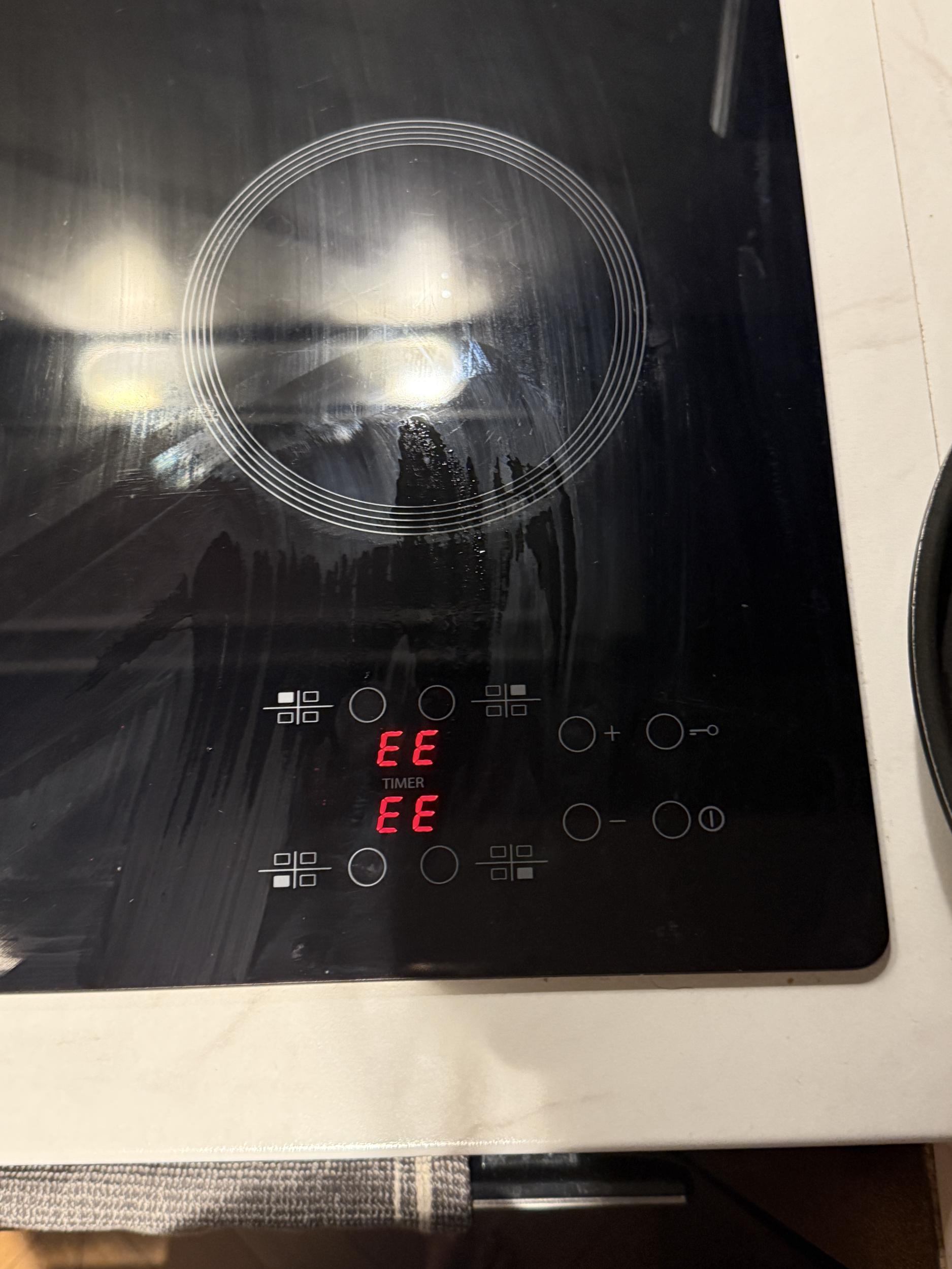 Tänasest ei lähe enam induktsioonpliit tööle. Kui nuppe all hoida tulevad ette märgid/numbrid, mis kuvatud piltidel, kuid pliit ise tööle ei lähe. Ahi, mis asub pliidi all töötab.