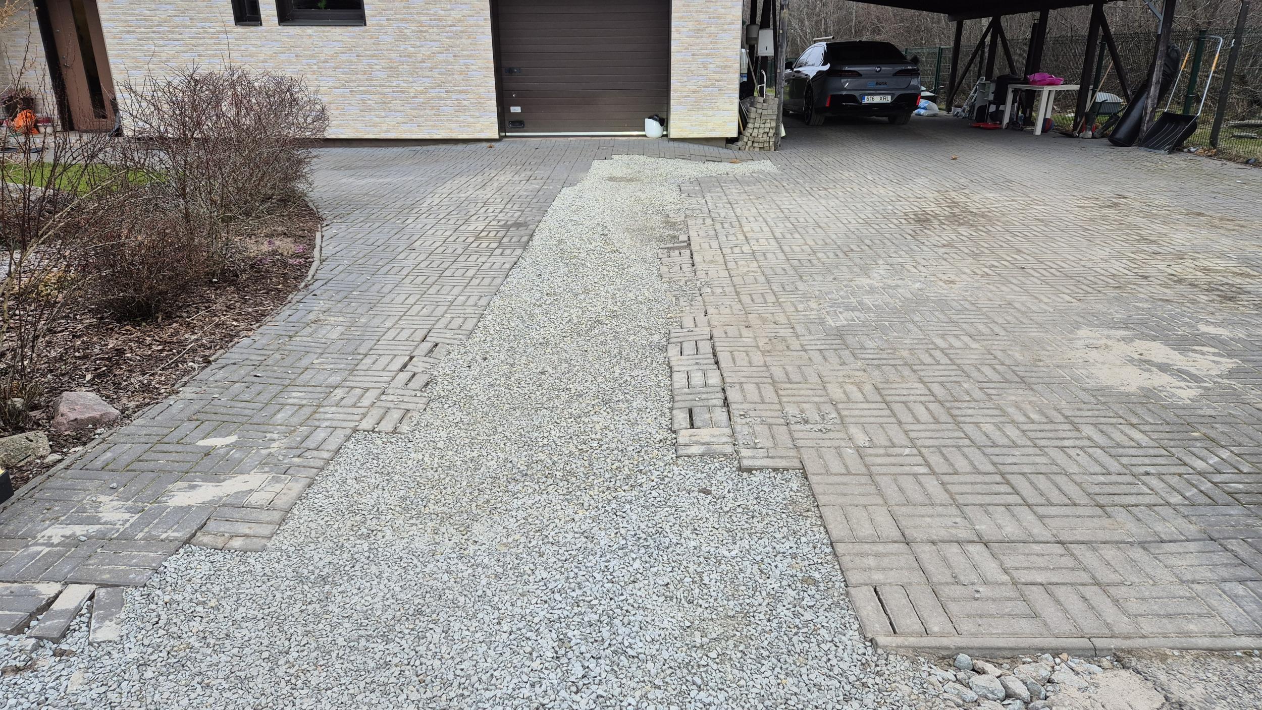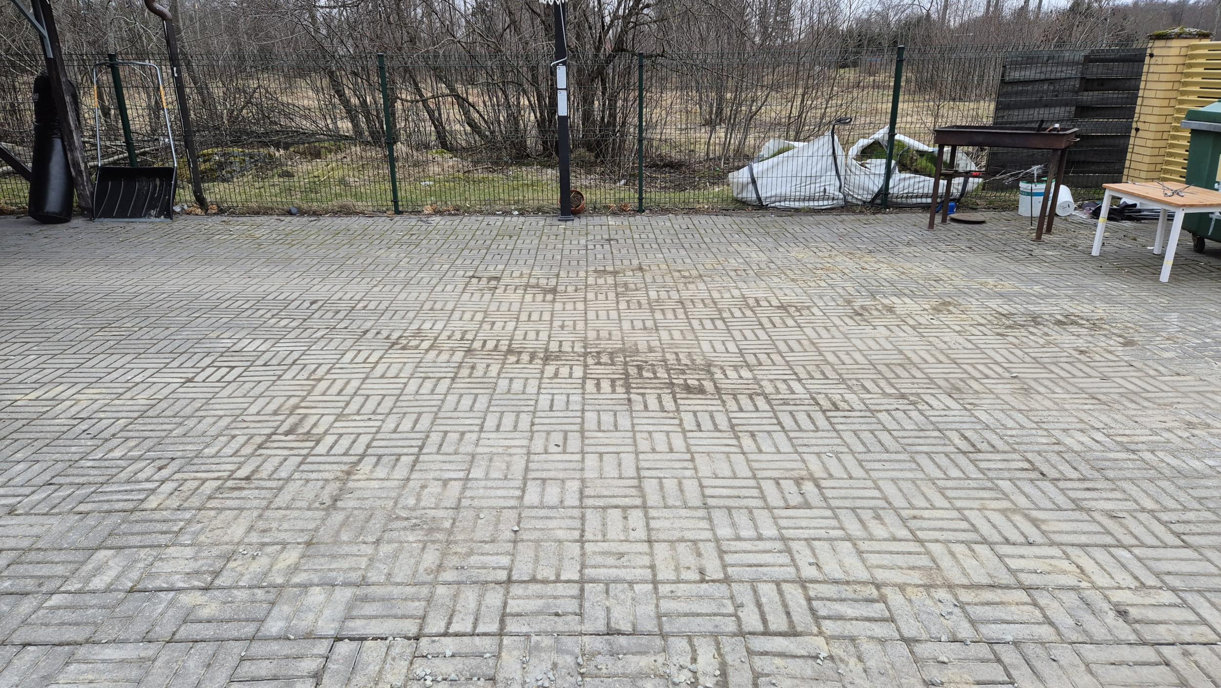 Olemas olevad kivid 50 m2 vaja üles võtta, pinnas tasandada, kivid tagasi panna ja kuivliivaga liivatada nii, et liiv vajuks kivide vahele, mitte ei jääks kivide peale. Ja teine ala on ka 50m2 (viimane pilt), siin vaja ainult kivid puhastada/pesta ja ka uuesti liivatada, kive üles pole vaja võtta.