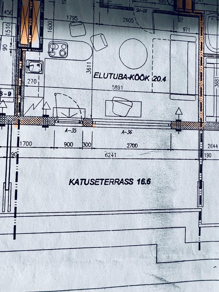 Korter asub 5. korrusel. Terass on 16,6m2. Selle mõõdud on: pikkus - 2660 cm, laius - 6240 cm.