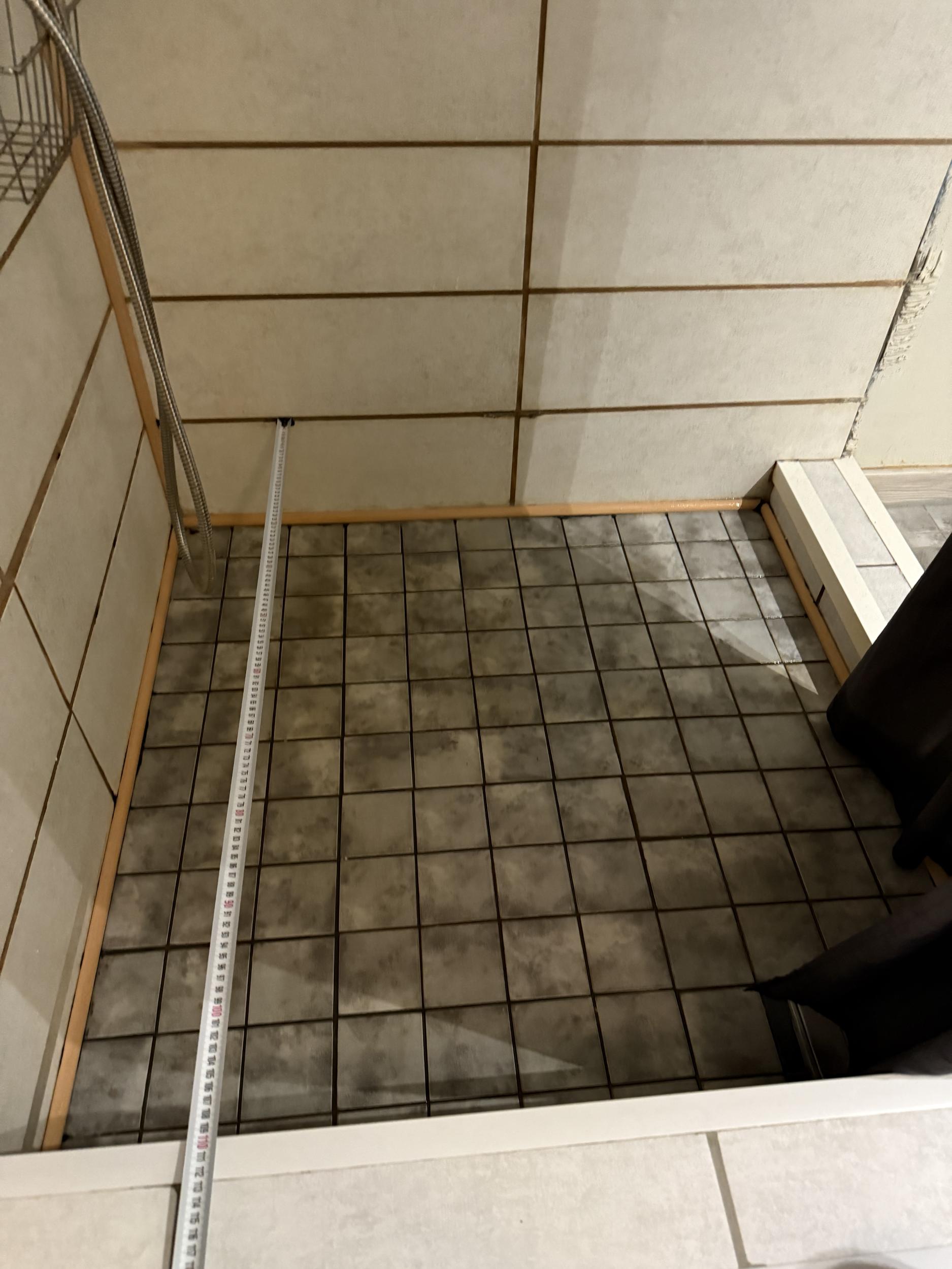 dušinurga põranda 1100x1100mm üleplaatimine, saada õiged kalded. Hetkel kalded valed ja vesi jääb seisma nurkadesse.
