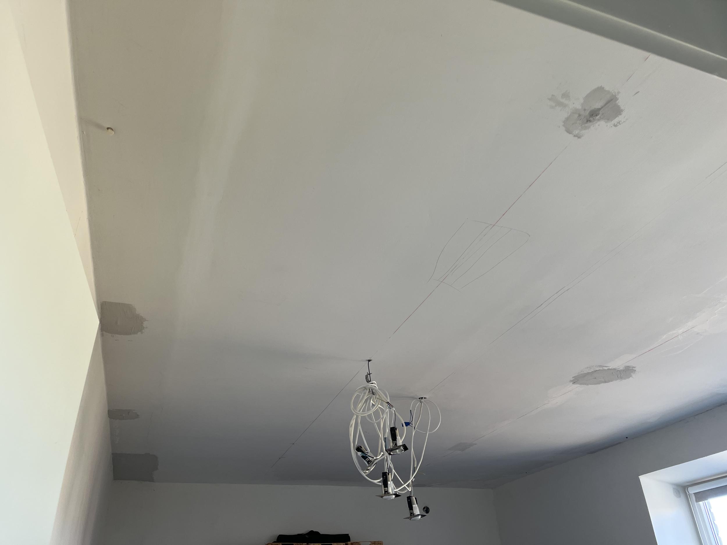 Lauspahteldus suuremate ebatasasuste ühtlustamiseks (ei vaja 100% sirget tulemust - lihtsalt, et liialt silma ei riivaks). Hetkel on laest eemaldatud ripplagi ning osasid kinnitusi on väga raske eemaldada. Olukord on hetkel hirmutav, aga usun, et on tehtav.