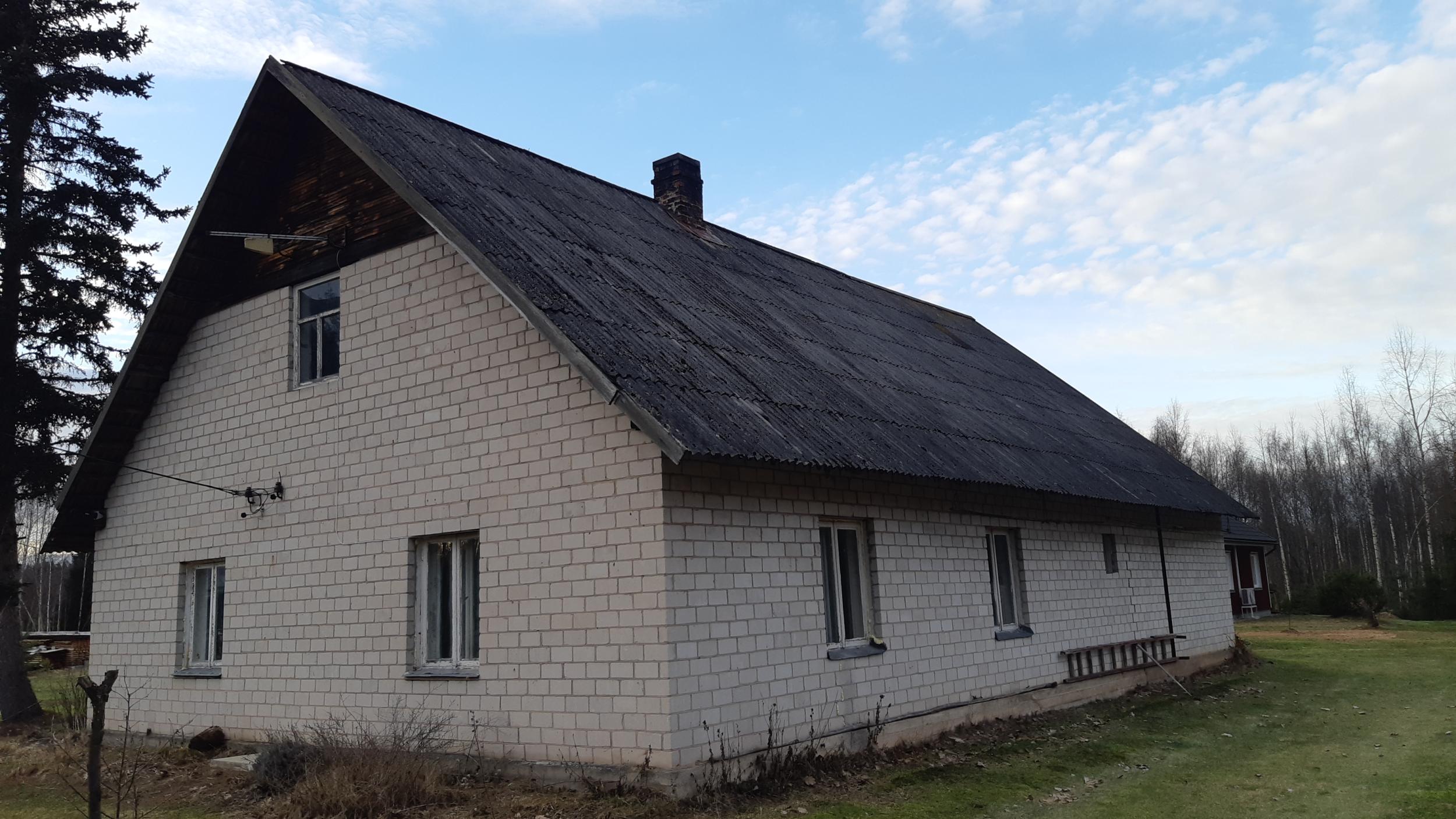 Maamaja eterniitkatuse vahetus Tartu maakonnas. Olemasolev katus on: eterniit, laast ja ümar roovitus.