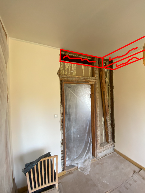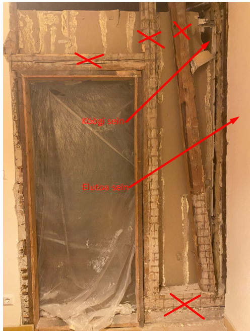 Kahe toa vahelise seina ülemise osa "taastamine" - Kahe toa vahelise vaheseina ülemine seina osa tuleb uuesti kipsplaadi abil taastada vana köögi laest kuni elutoa laeni.