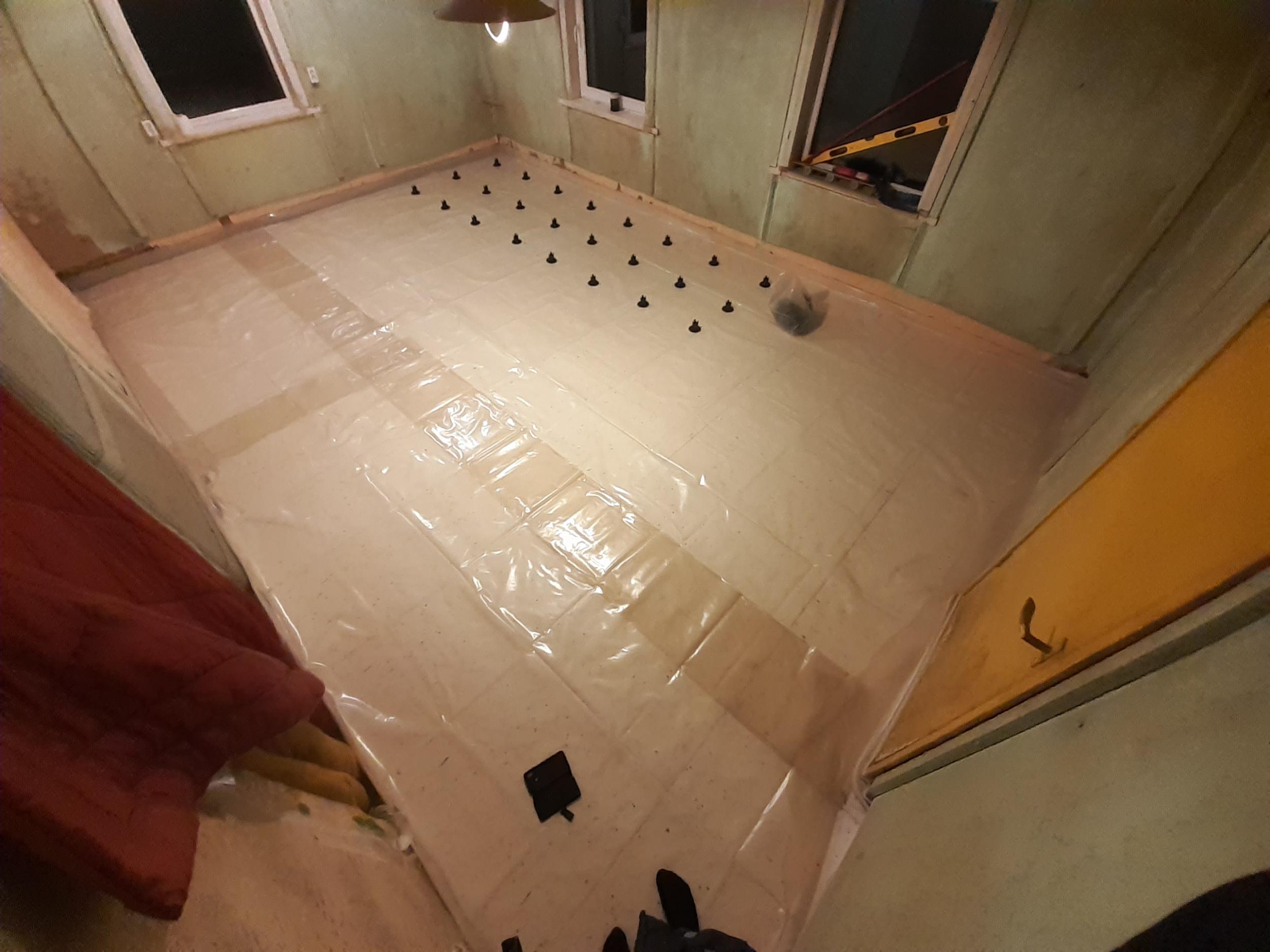 Vajalik paigaldada armatuur ja põrandakütte kaabel, valada betoon 8 cm.