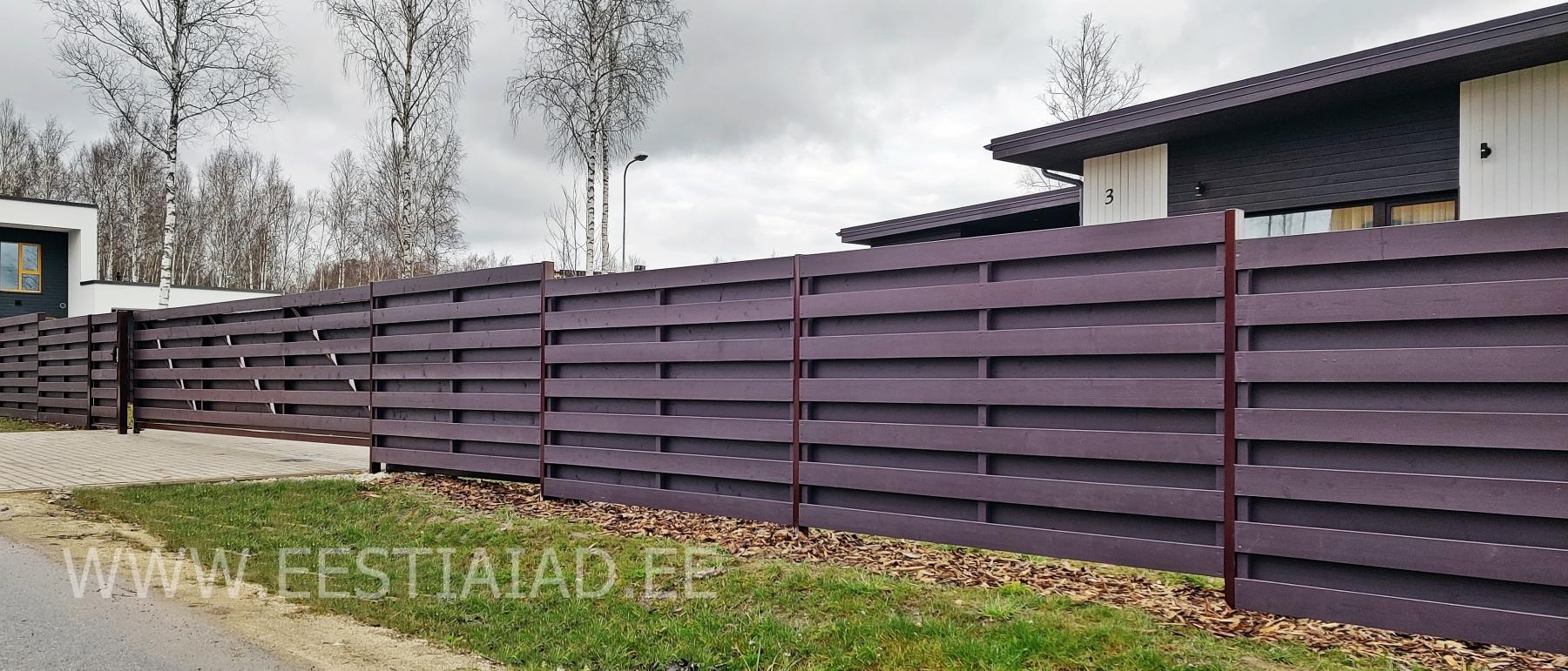 Aia pikkus oleks umbes 40 m ja kõrgus 1,9m. Soov on vertikaalne laud/lippaed. Värv selline hallikas tumesinine.