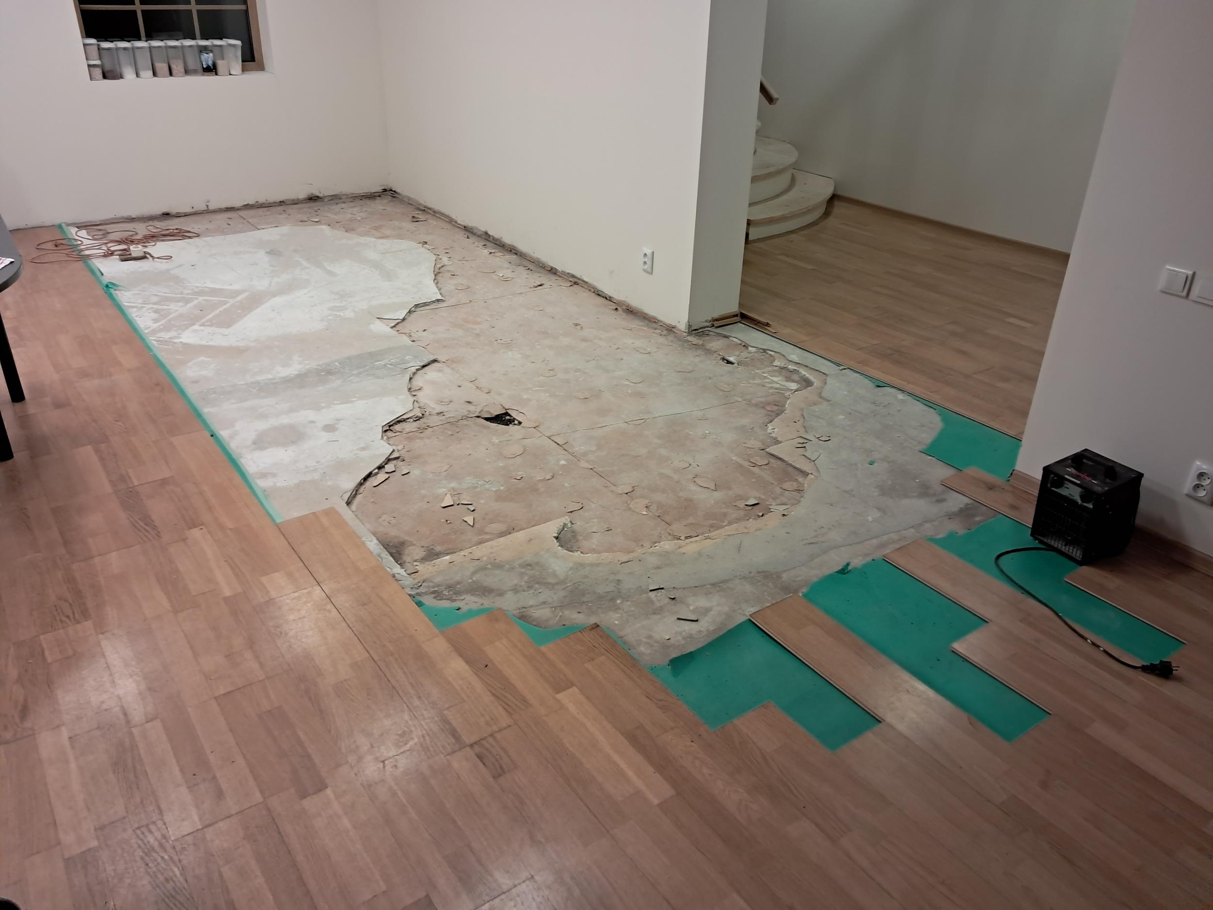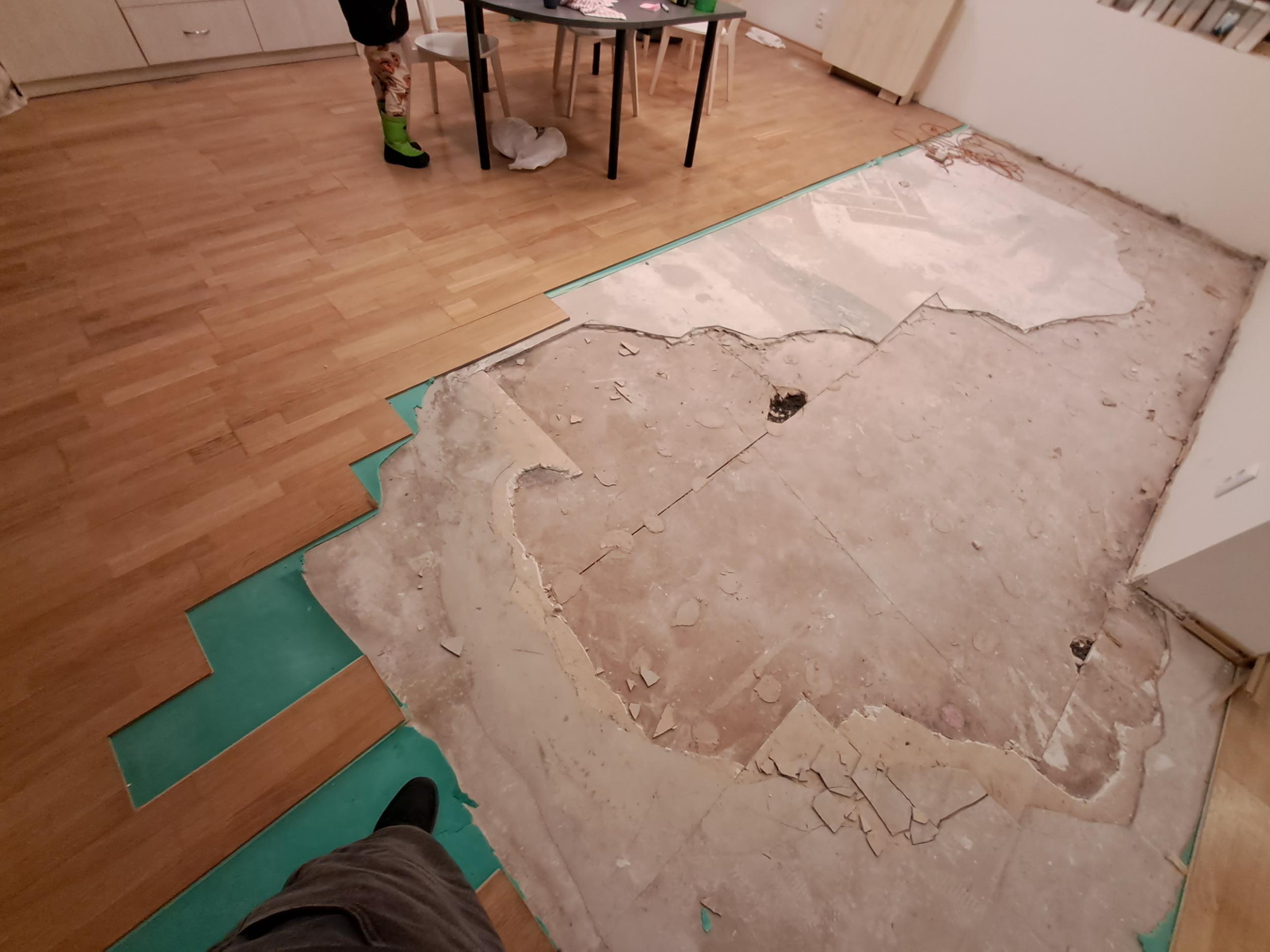 2. Paigaldada 12mm põrandahüprok ca 3m2 ning seejärel valada isetasandusseguga paksusega ca 5mm
