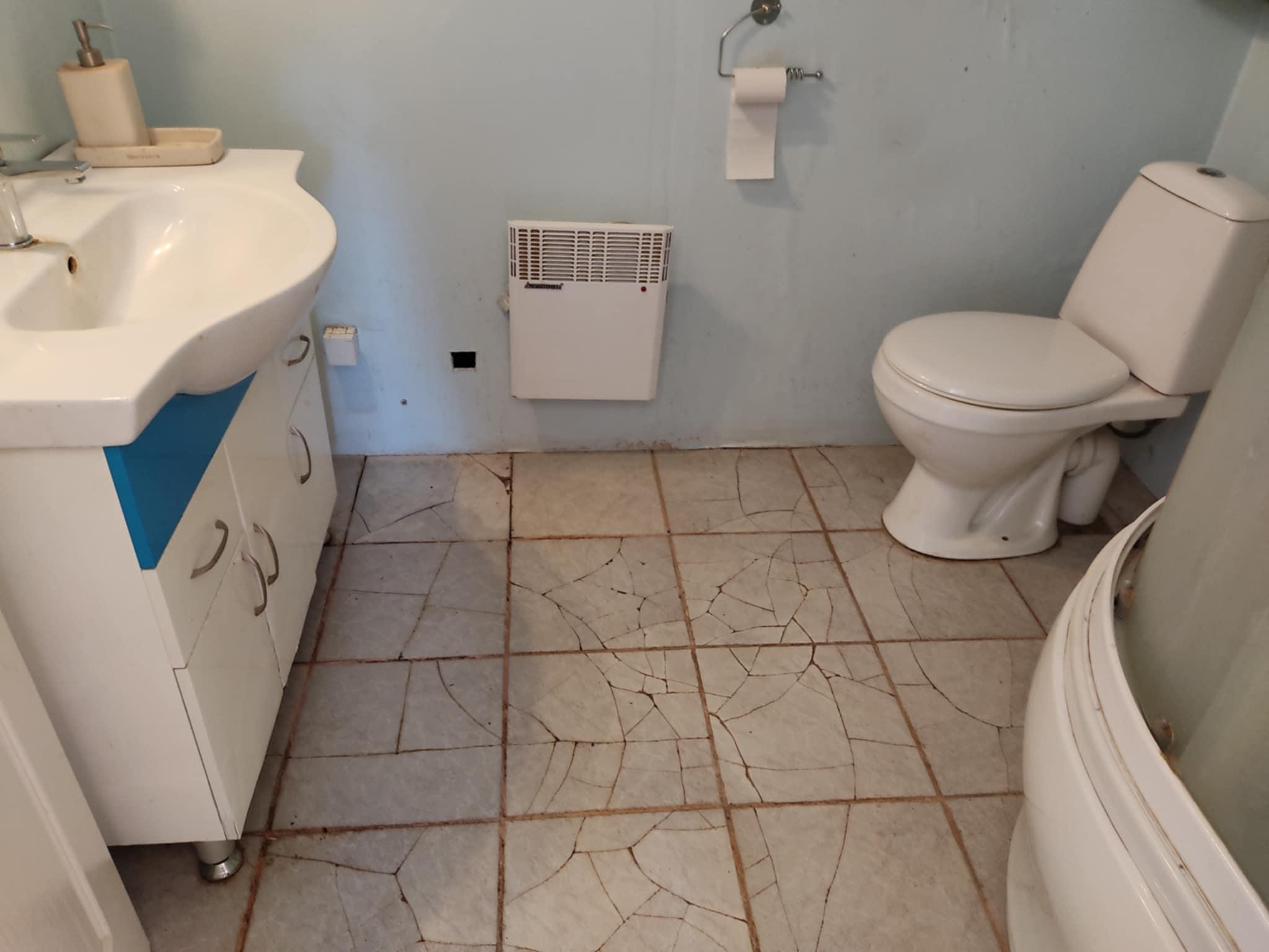 Eramaja 2.korrus. Vannitoa (4m2) põranda plaadid tuleb lammutada, utiliseerida. Kontrollida vannitoas olevaid torusid. Vajadusel tuleb osaliselt kipsplaadist seina lõhkuda (välja lõigata). Lekke korral asendada uute torudega