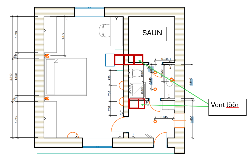 Eramu renoveerimise käigus oleks vaja pesuruumile panna äratõmme. Selleks tuleks korstna tühja lõõri paigaldada toru, kuhu omakorda väljatõmbeventilaator (võiks olla katuseventilaator). Lisaks oleks vaja sauna jaoks tekitada õhu pealevool ja väljatõmme.