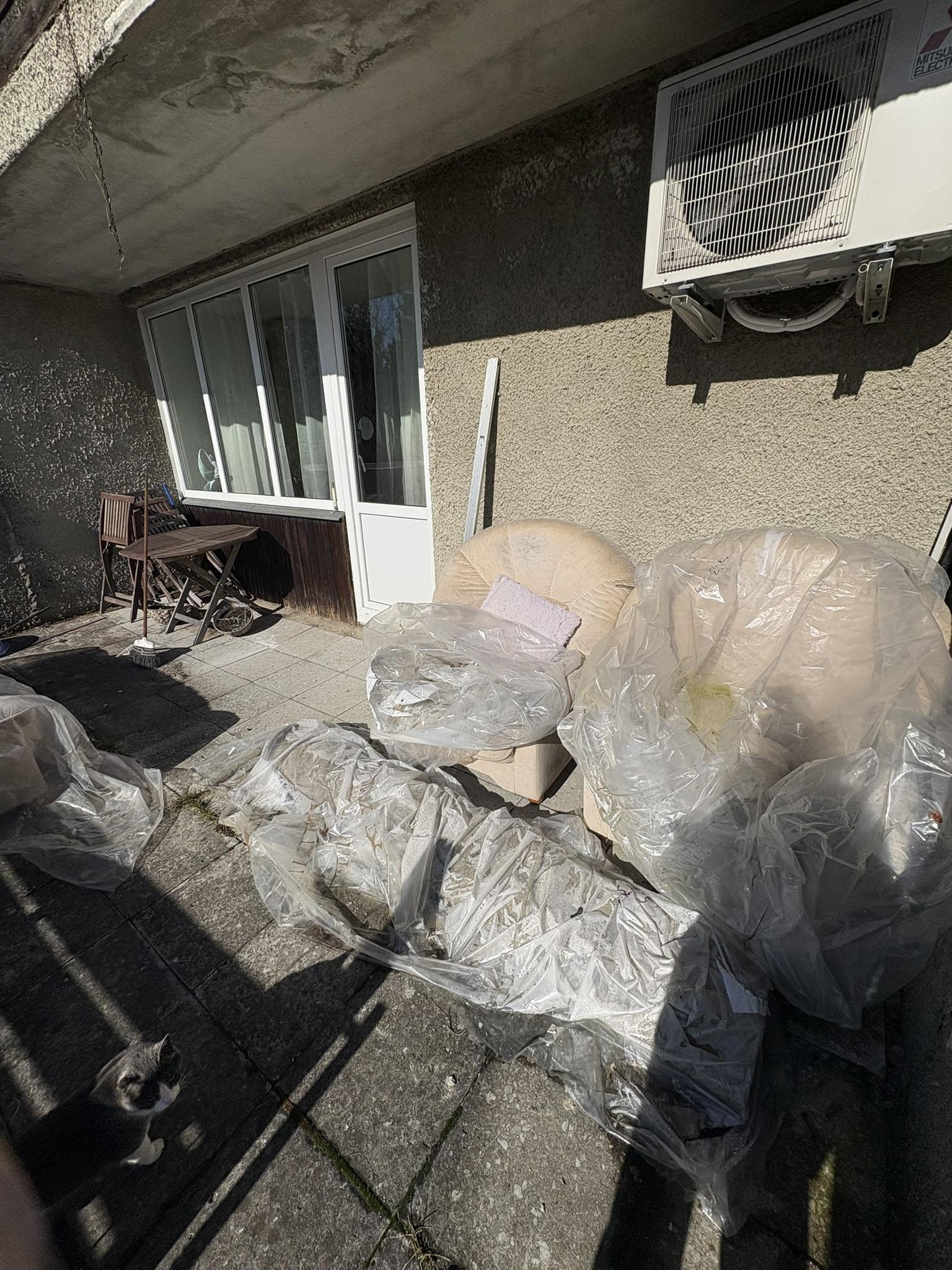 Soov oleks vabaneda terrassi hõivavast vanast mööblist (diivan + 2 tugitooli + vaip) ning renoveerimise käigus tekkinud ehitusjäätmetest, mis on kõik ühes kuuris. Sisuliselt läheks äravedamisele kõik, mis piltidel (va sarrus, peno, euroalused ning kusagil seal hunniku all elav muruniiduk). Ehitusjäätmetest valdavalt vana parkett, kottidesse pakitud mahakraabitud tapeet, veidi ehituskeemiat, törts keraamilist plaati. Tööde teostamine esimesel võimalusel.