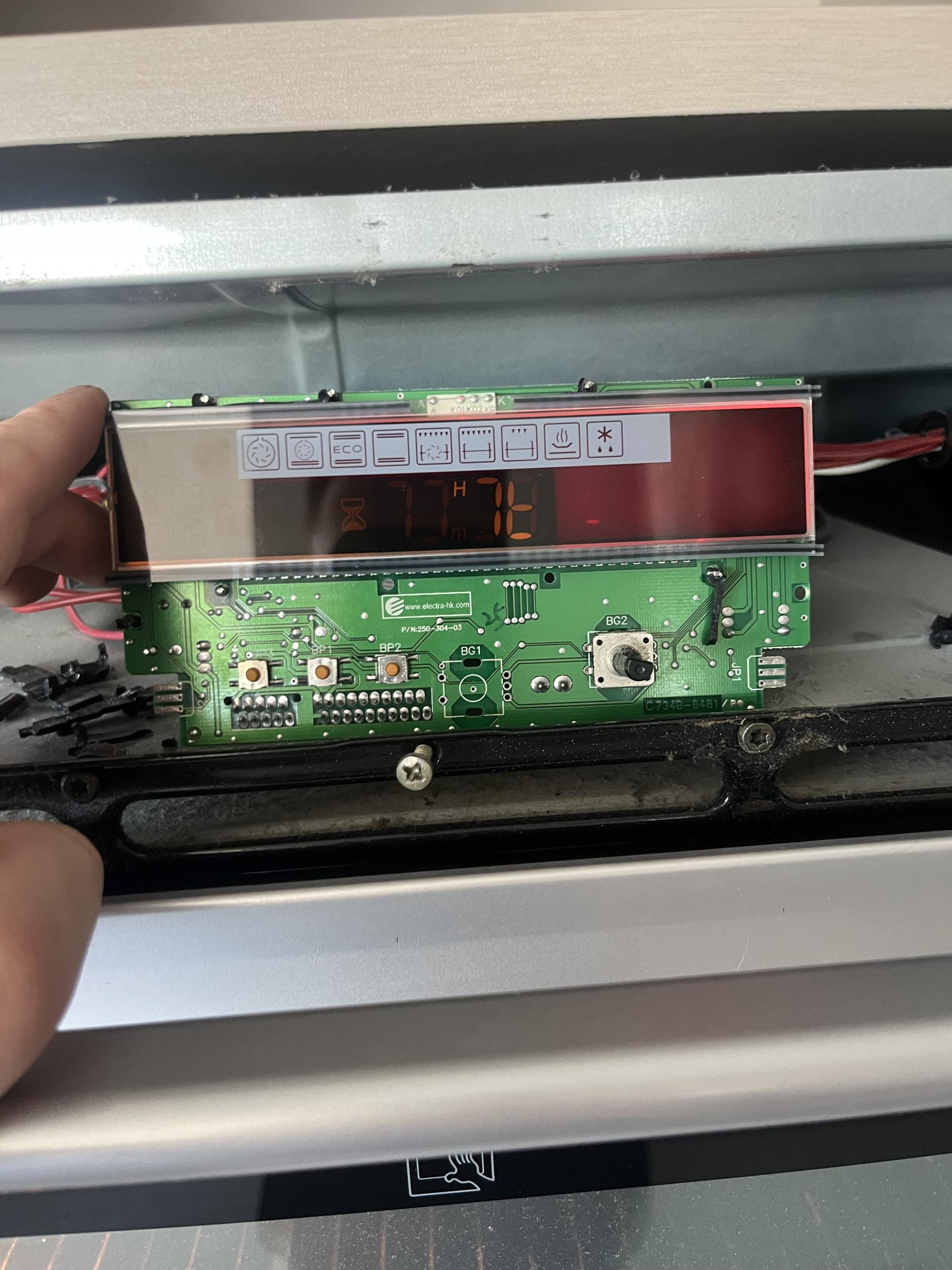 Ahju ekraan nimelt hakkas järsult segast infot näitama, samuti ei saa seda enam välja lülitada. Sooviks teada kas selle ahjuga annab midagi veel teha või ei.